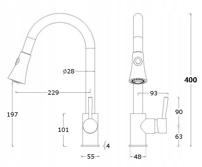 + SNAKE BATERIA KUCHENNA Z WYCIĄGANĄ WYLEWKĄ