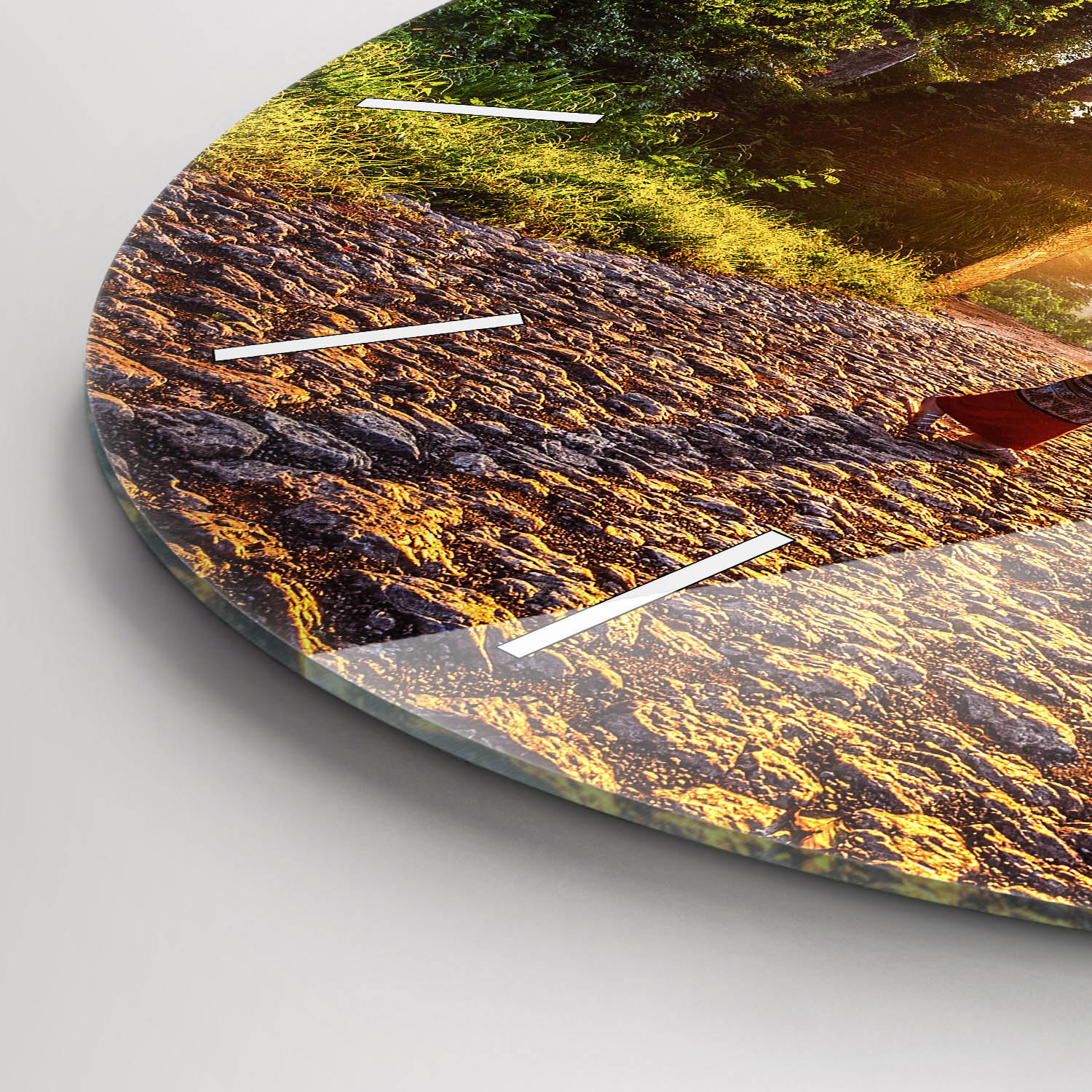③ Pamiętaj, że kupujesz zegar szklany z nadrukiem. Motywy takie jak np. brokat, złoto, srebro, beton, marmur, pordzewiała blacha, drewno itp. są nadrukowane, przez co mogą się różnić wyglądem od ich prawdziwych odpowiedników.