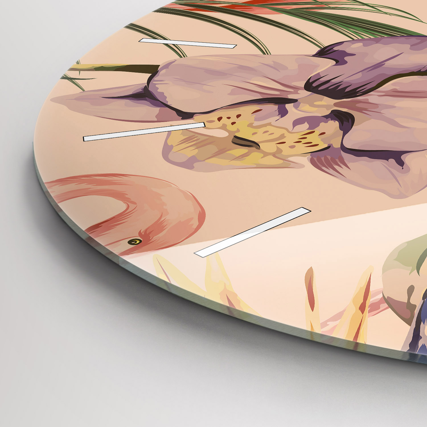 Nowoczesny szklany zegar ścienny Tropikalne liście palmowe, 1239362