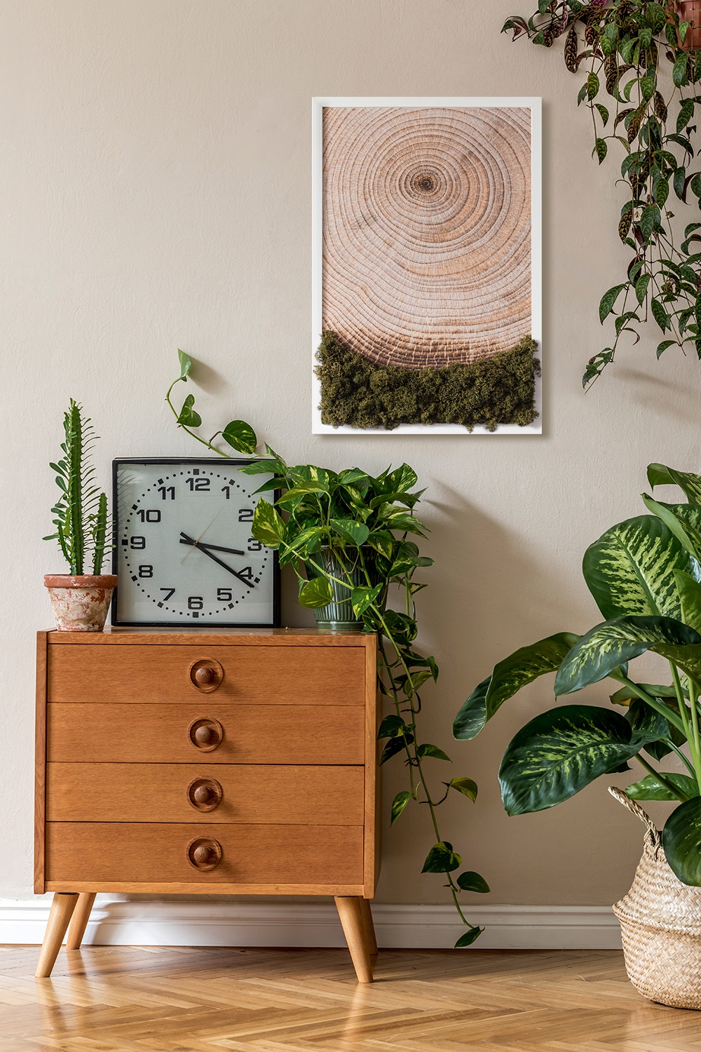 Obraz z mchem - Słoje drewna 40x60 cm Biała Rama, 2479215