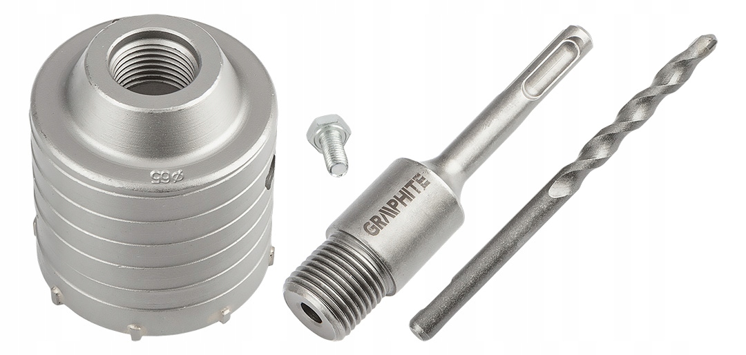 Otwornica widiowa 65 mm z adapterem SDS+ oraz wiertłem pilotującym 55H321 marki GRAPHITE