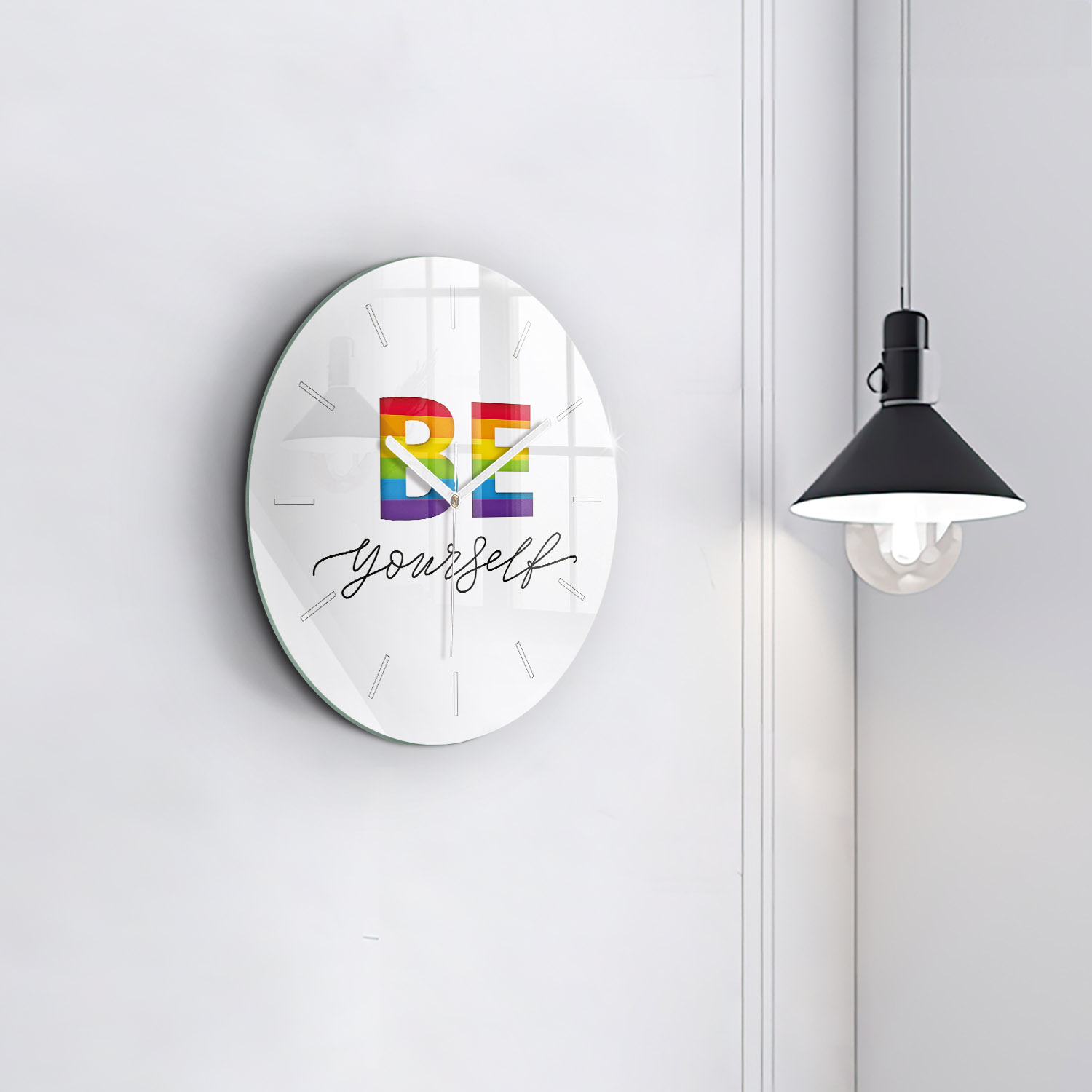 Ścienny Zegar szklany ozdobny Napis Be yourself fi30