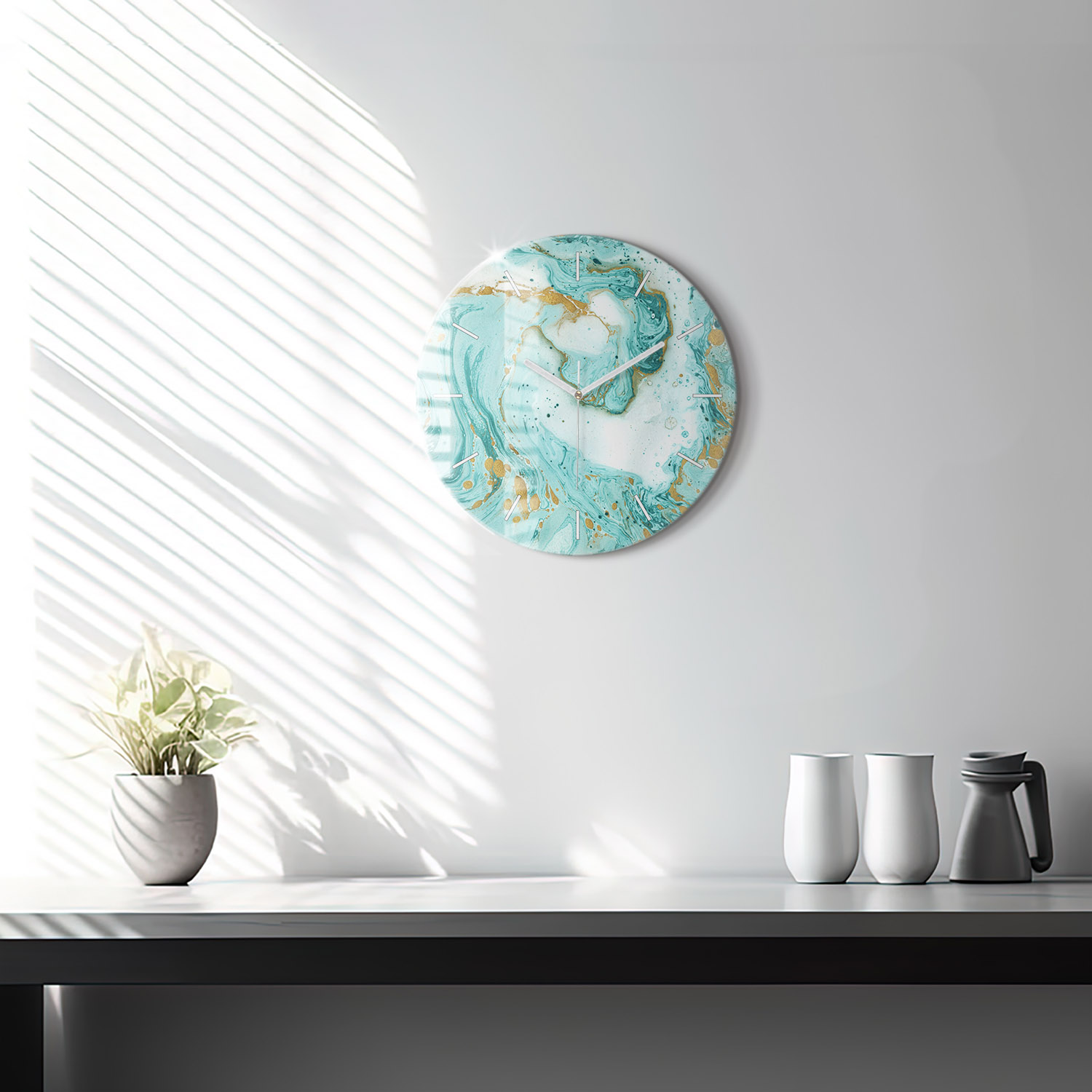 Ścienny Zegar szklany ozdobny Tekstura marmuru fi30