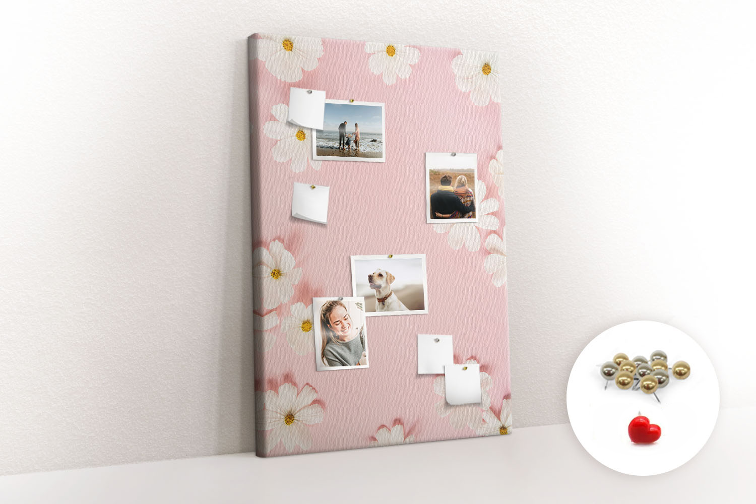Tablica korkowa z nadrukiem z metalicznymi pinezkami