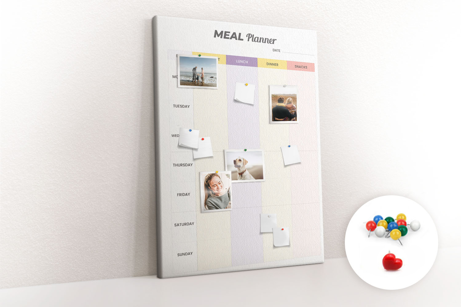 Tablica korkowa z nadrukiem z kolorowymi pinezkami