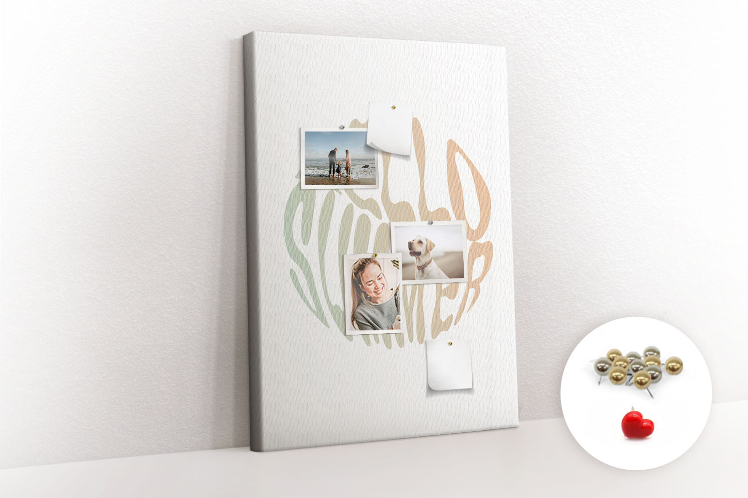 Tablica korkowa z nadrukiem z metalicznymi pinezkami