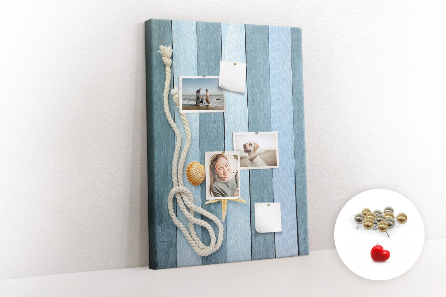 Tablica korkowa z nadrukiem z metalicznymi pinezkami
