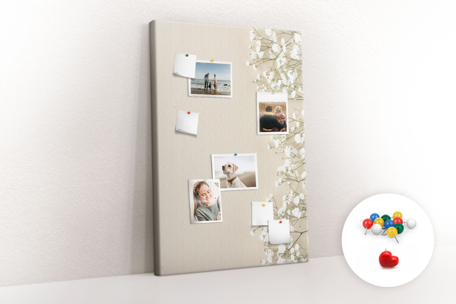 Tablica korkowa z nadrukiem z kolorowymi pinezkami