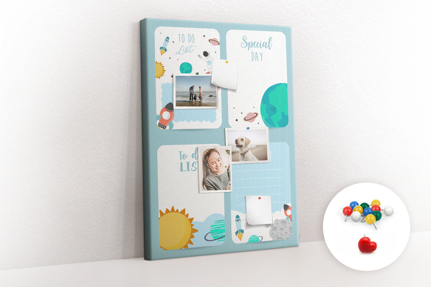 Nadruk na tablicy korkowej jest dostosowywany do Twoich preferencji. Możesz wybrać spośród szerokiej gamy wzorów, motywów, kolorów oraz rozmiarów.