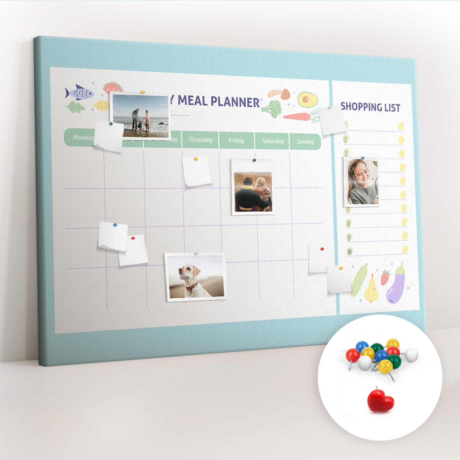 Tablica korkowa z nadrukiem do salonu + pinezki Planer