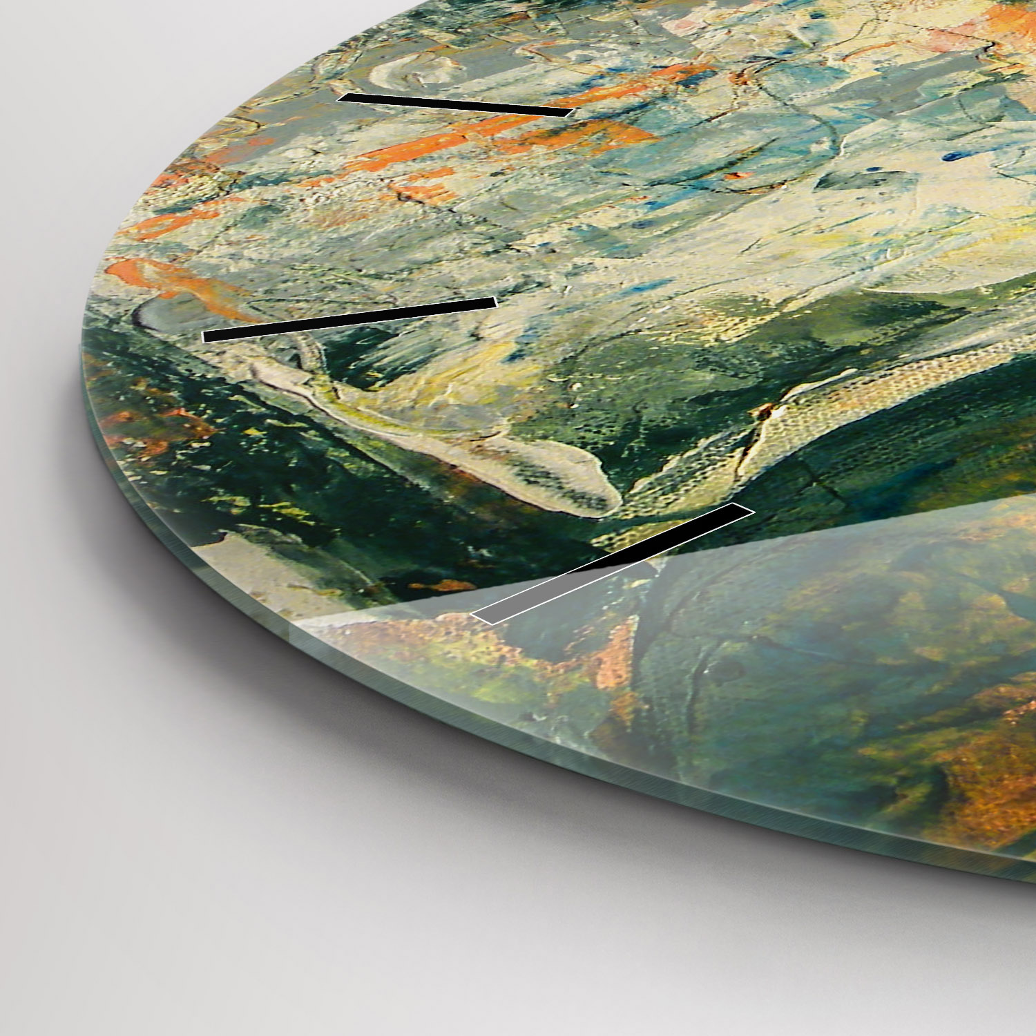 ③ Pamiętaj, że kupujesz zegar szklany z nadrukiem. Motywy takie jak np. brokat, złoto, srebro, beton, marmur, pordzewiała blacha, drewno itp. są nadrukowane, przez co mogą się różnić wyglądem od ich prawdziwych odpowiedników.