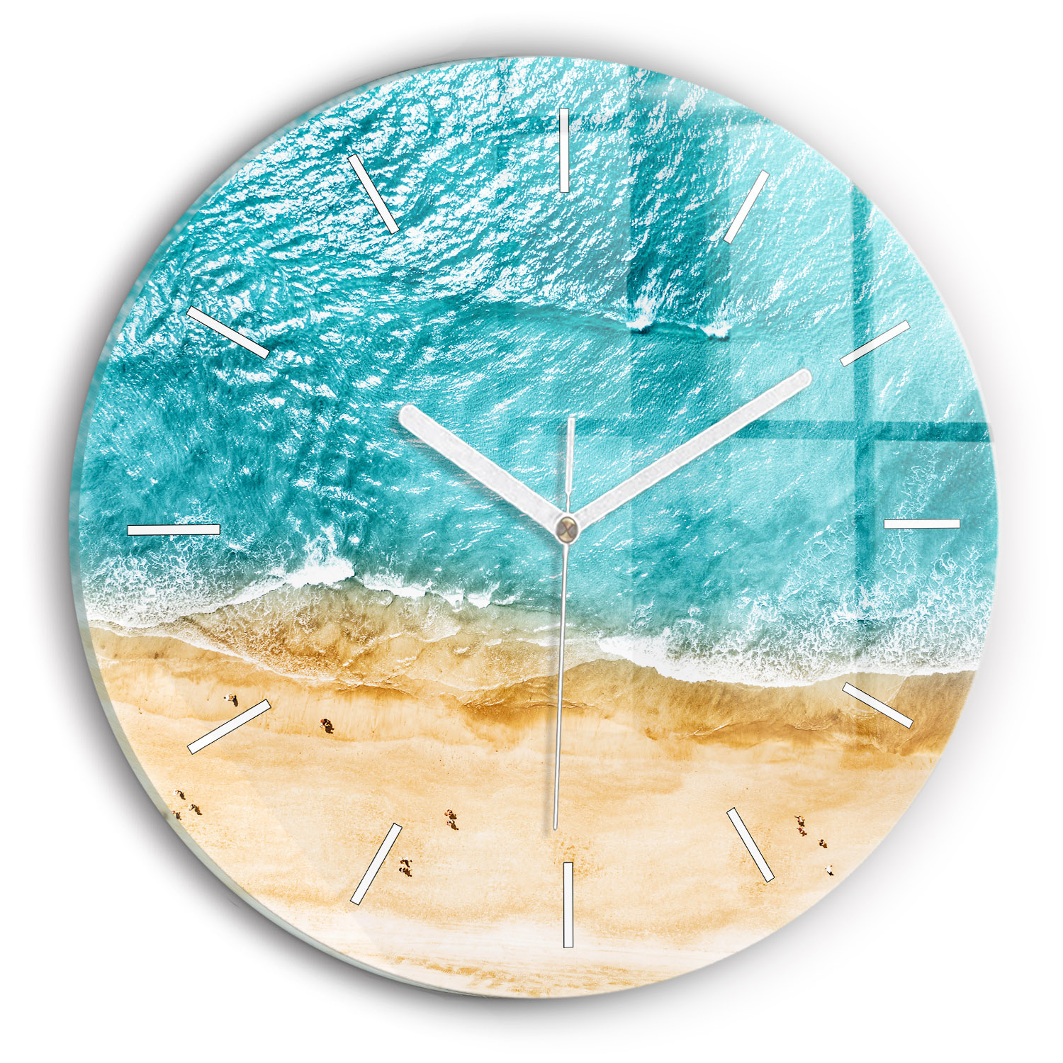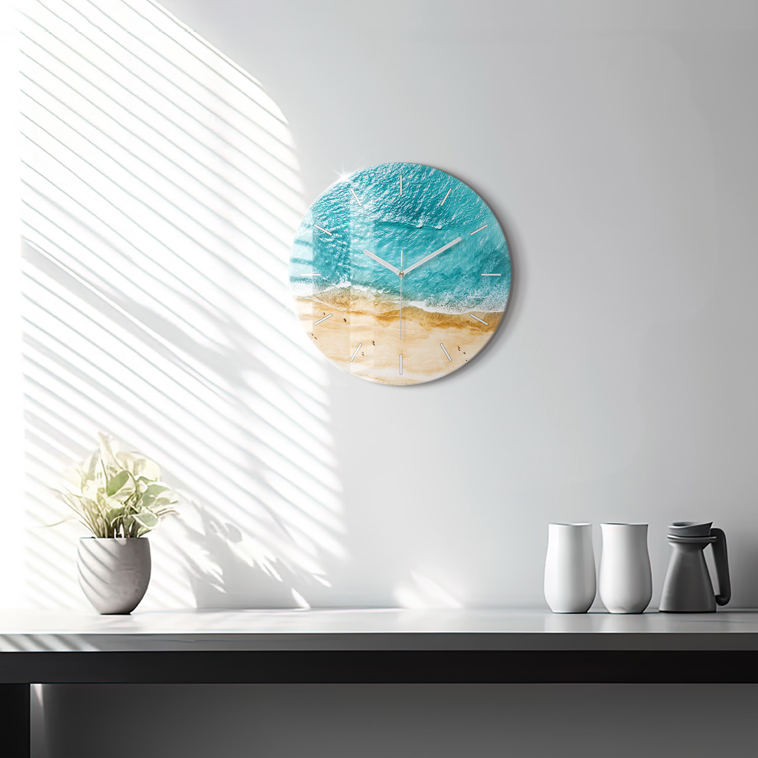 Zegar szklany ścienny do salonu Morze plaża ludzie fi30