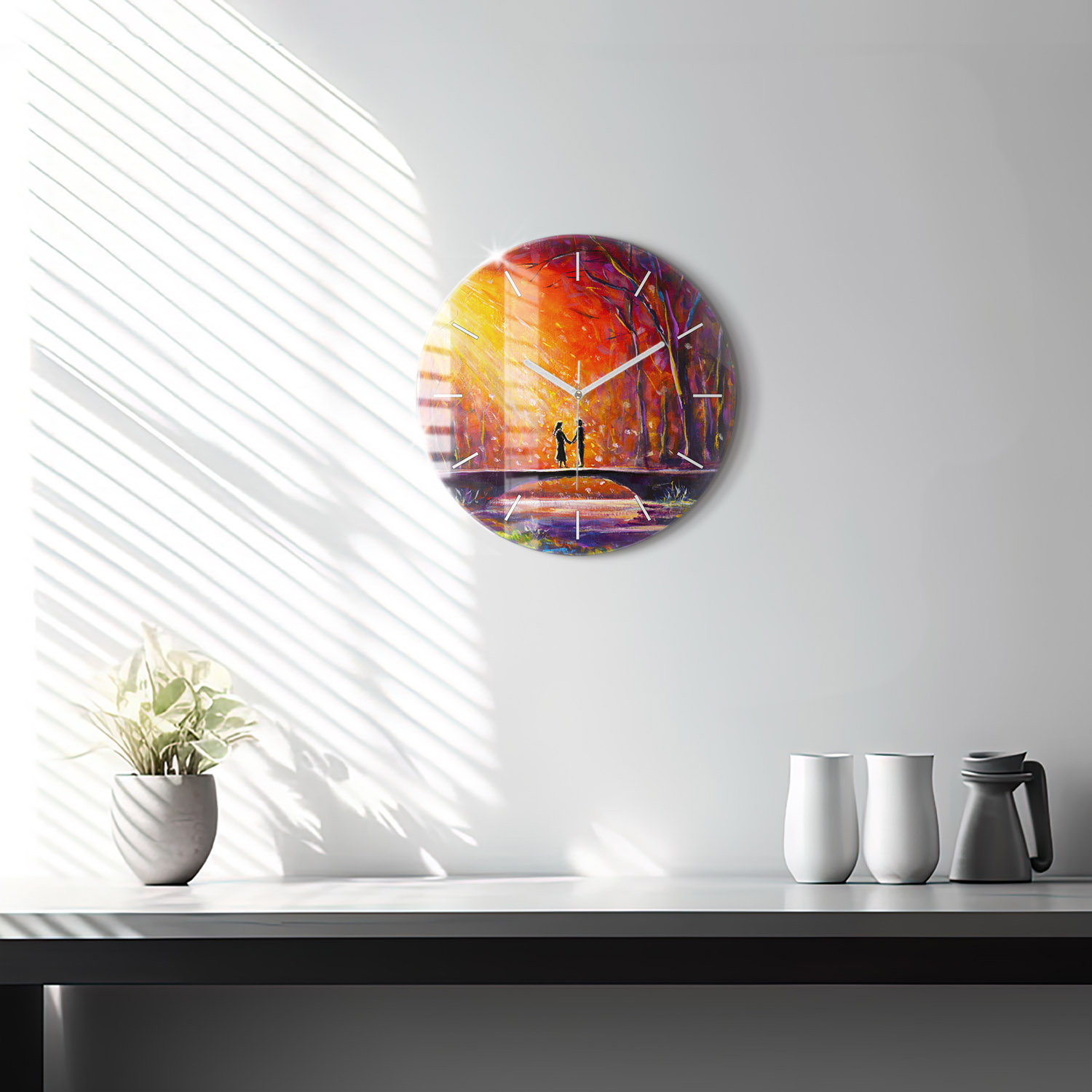 Zegar ze szkła ścienny Para w lesie fi30, 1263352