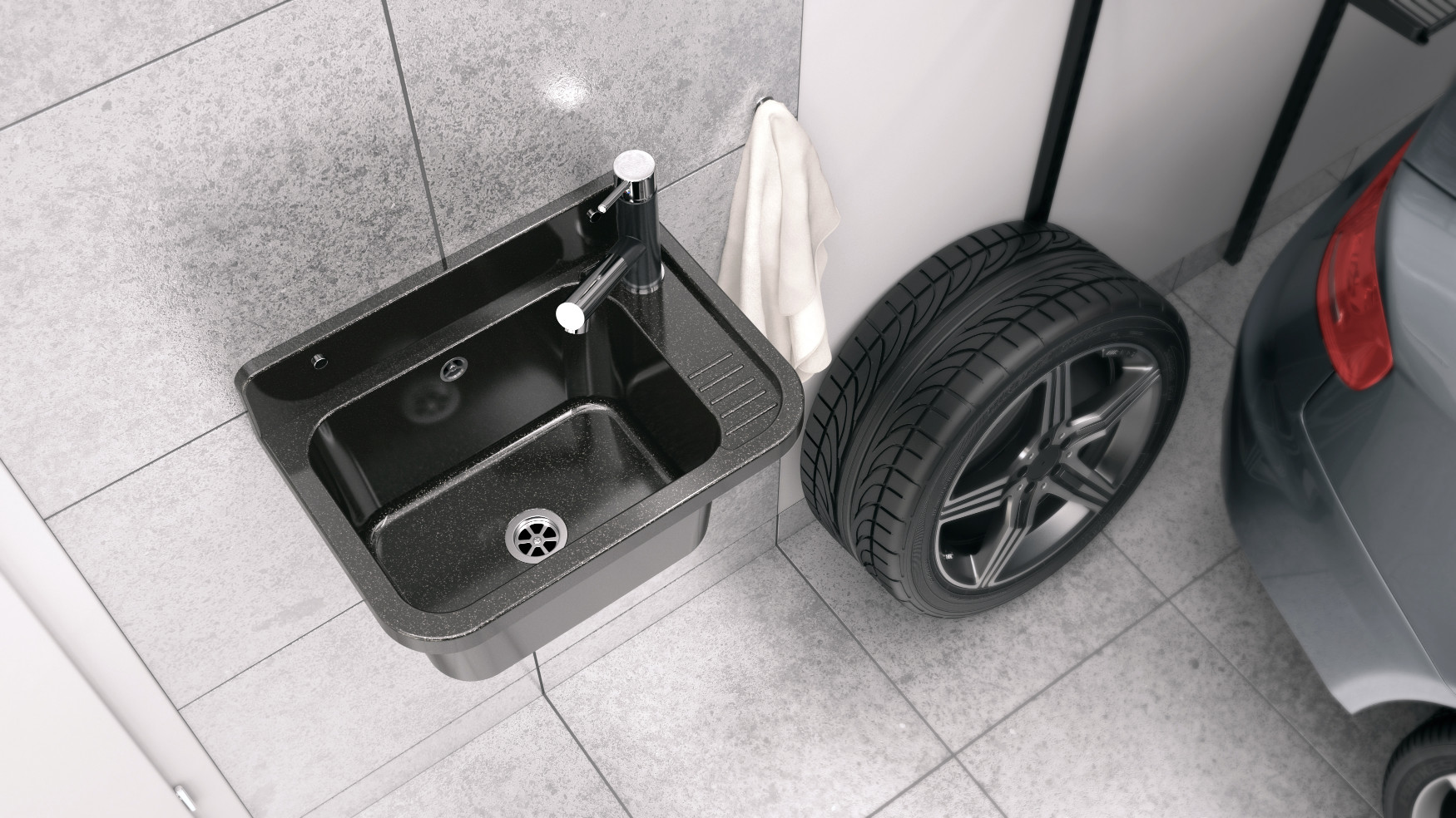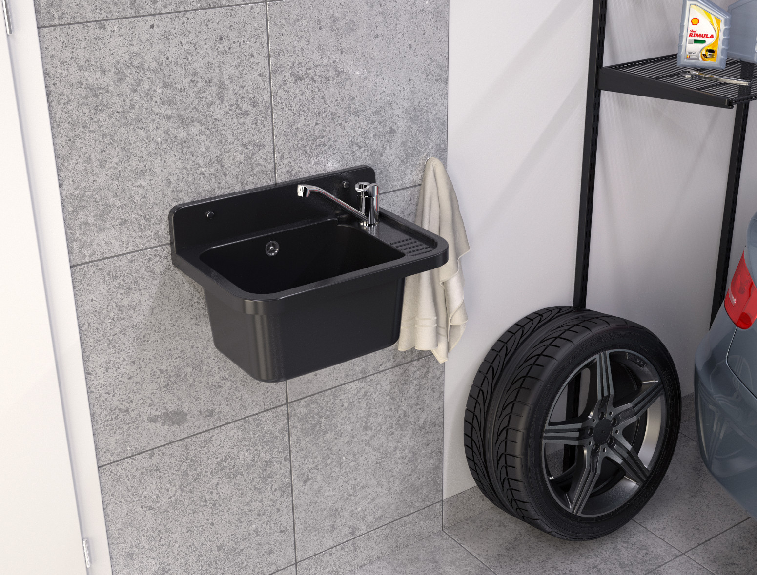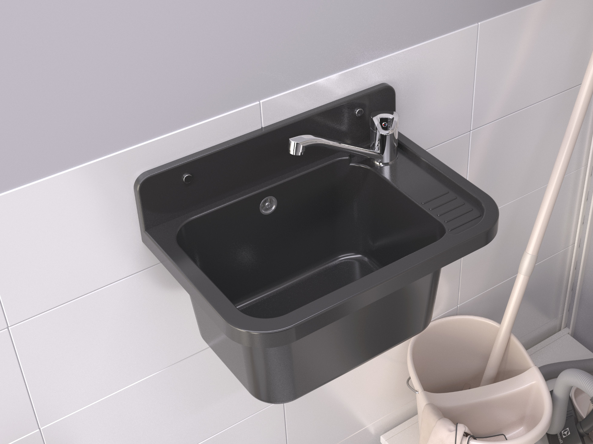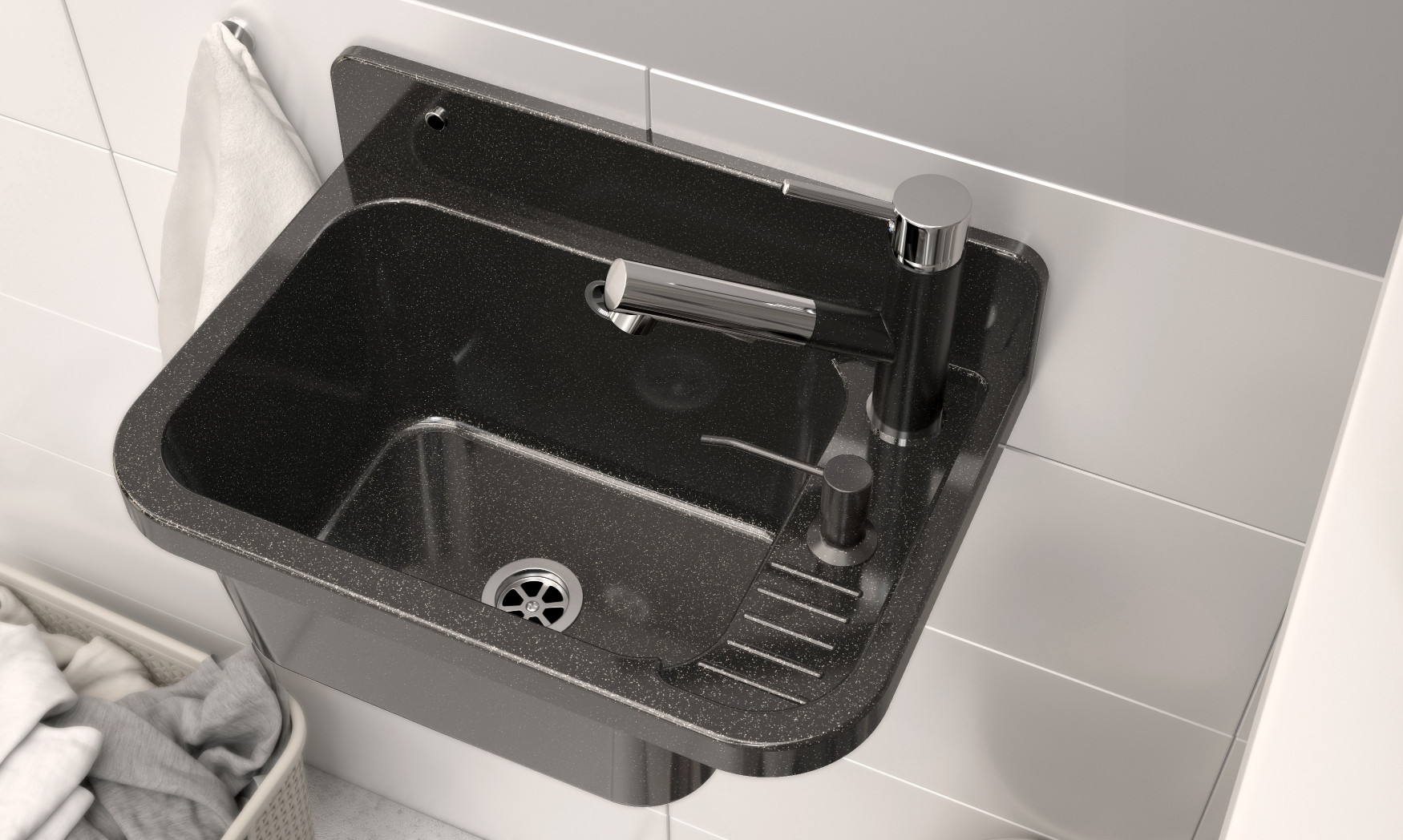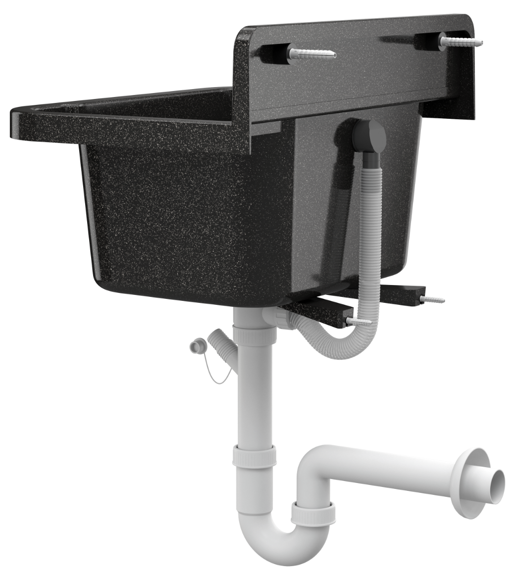 Zlew gospodarczy Roboczy PRALNIA GARAŻ KOTŁOWNIA czarny marmurkowy PARON