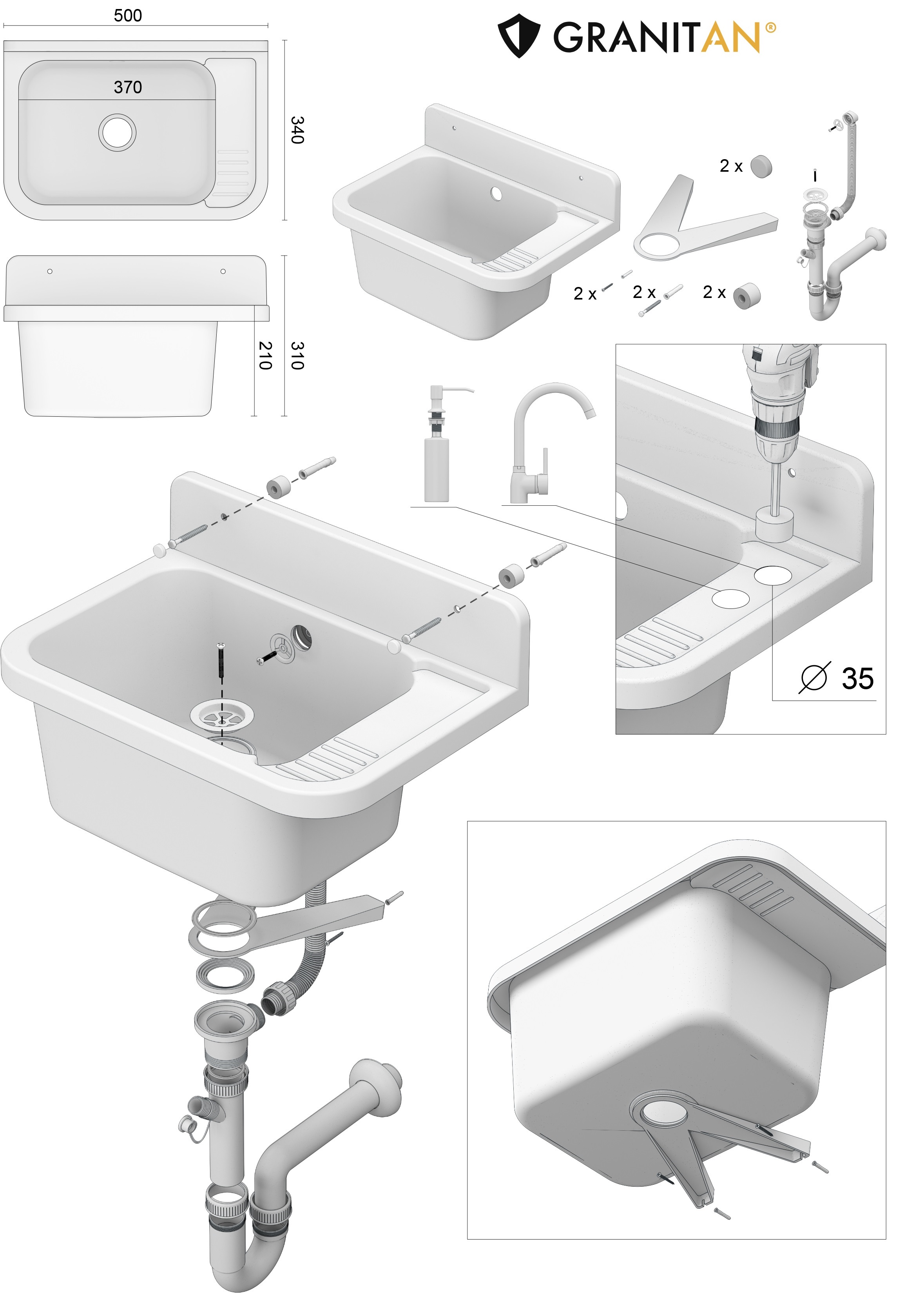 ✅W komplecie wszystko co potrzebne do montażu: syfon, zestaw montażowy