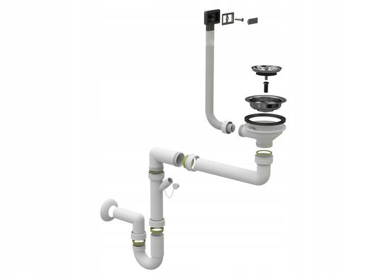 SYFON PRZYŚCIENNY MANUALNY Z PROSTOKĄTNYM PRZELEWEM W ZESTAWIE