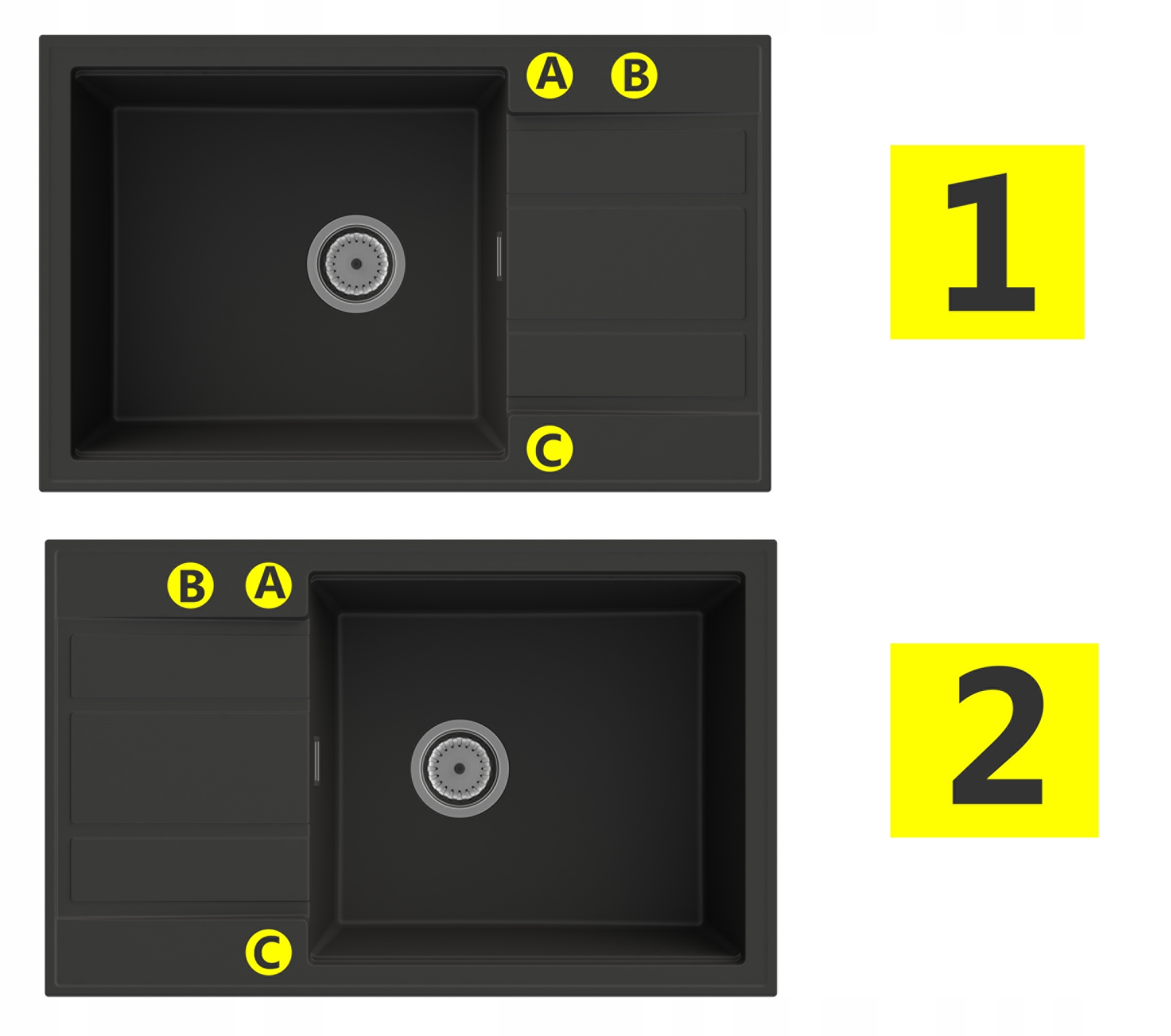 1. ILOŚĆ OTWORÓW W ZLEWOZMYWAKU I MIEJSCE WYKONANIA (A, B, C)