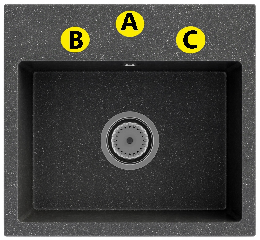 2. ILOŚĆ OTWORÓW W ZLEWOZMYWAKU I MIEJSCE WYKONANIA (A, B, C)