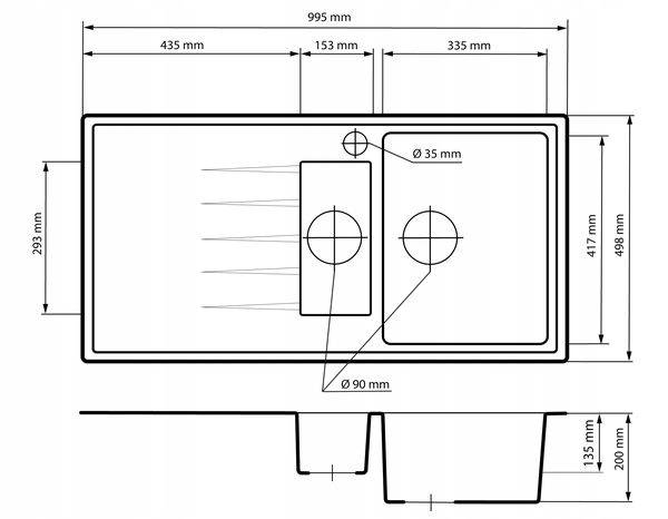 - otwory w zlewie nawiercamy bezpłatnie na życzenie klienta według wzoru