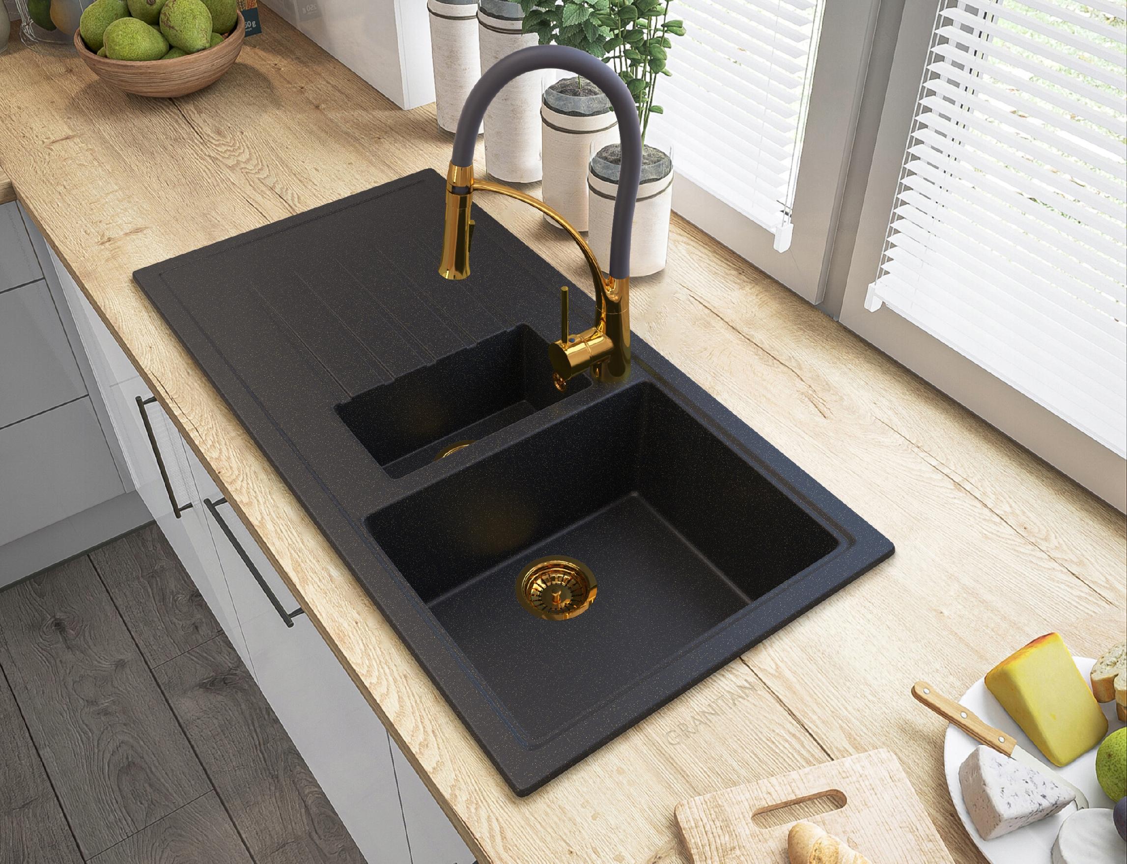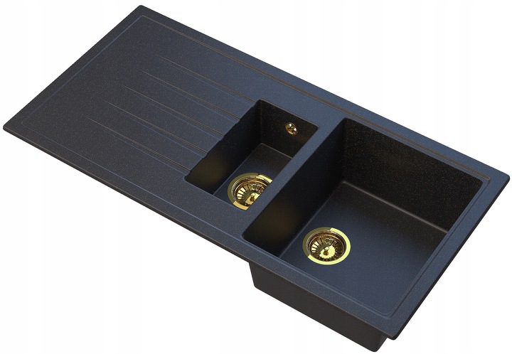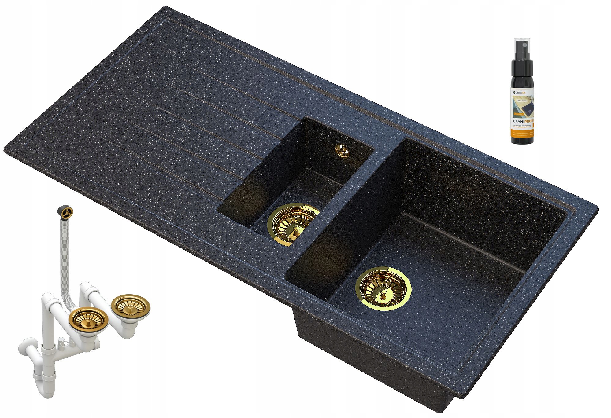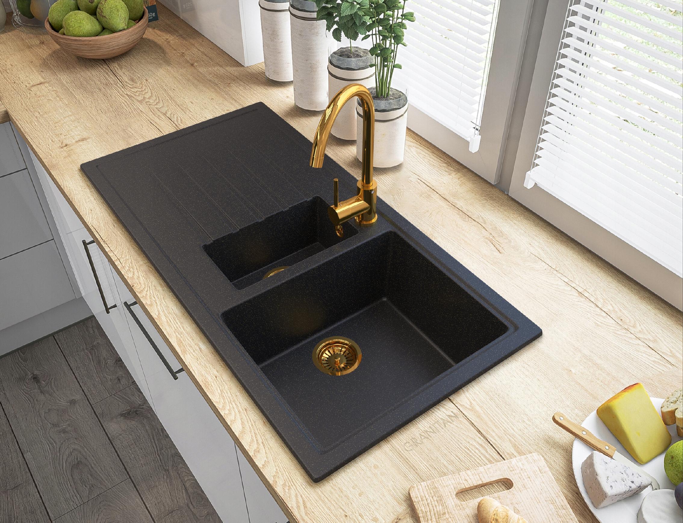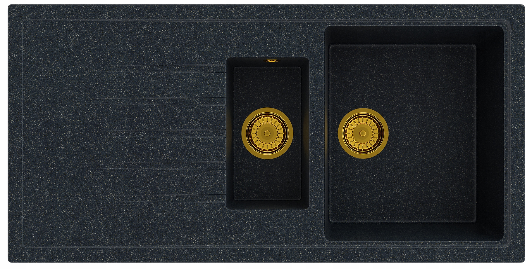 1. Zlewozmywak granitowy SOLARIS CZARNY Z DROBINKAMI ZŁOTA