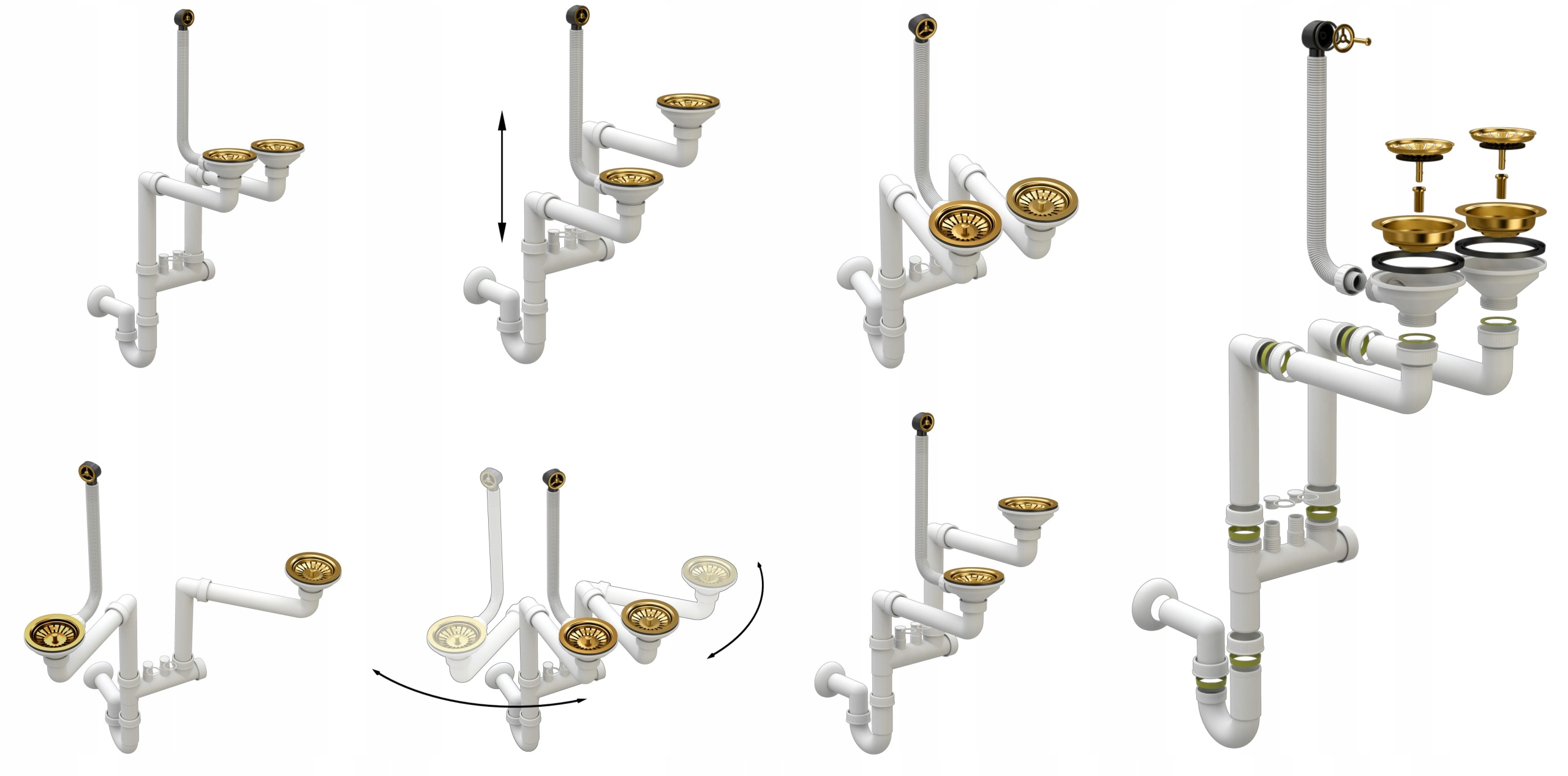 2. ZŁOTY syfon manualny z możliwością podłączenia zmywarki lub pralki