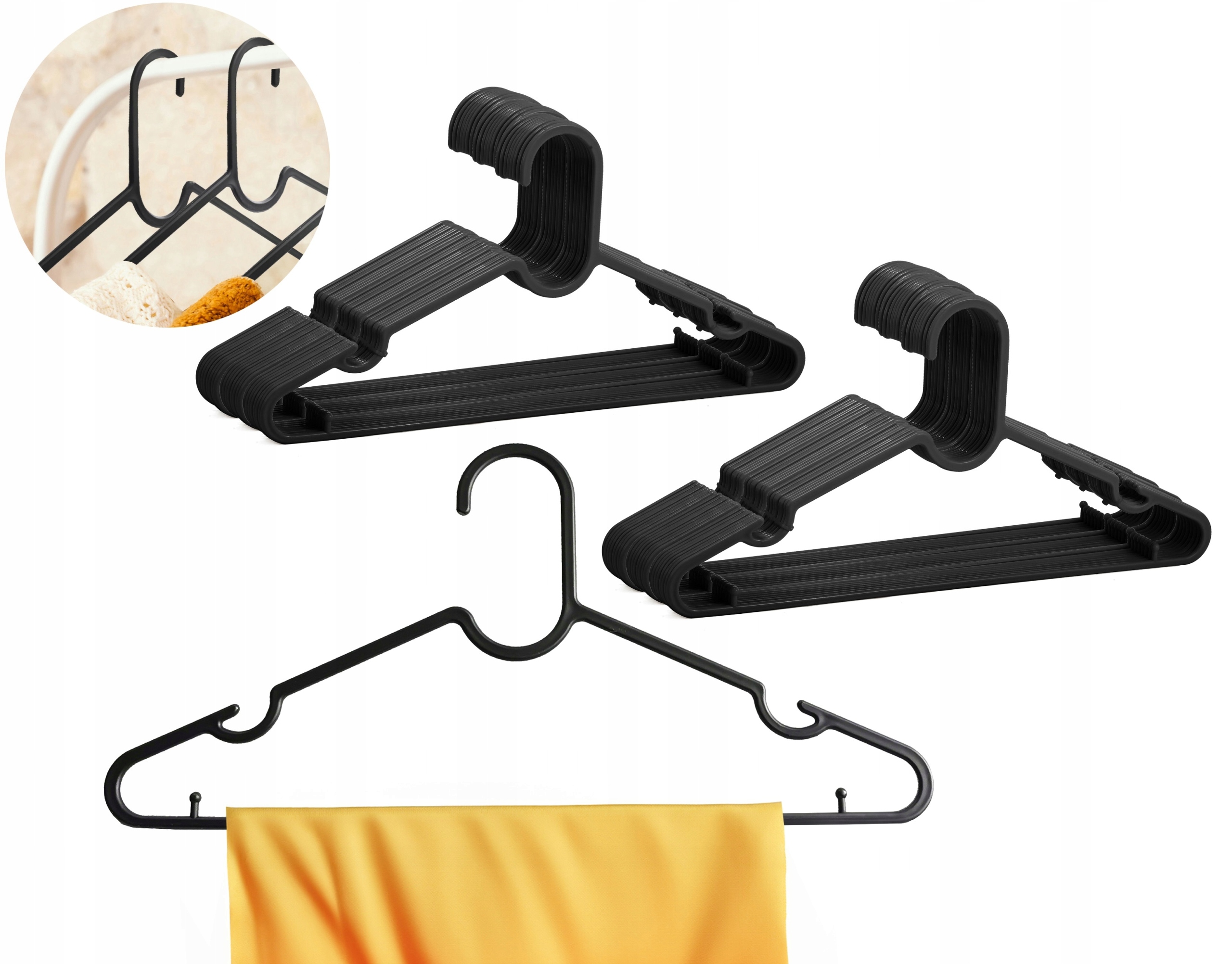ZESTAW 40X WIESZAKI PLASTIKOWE CZARNE W1004