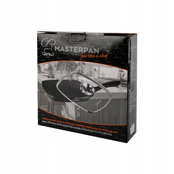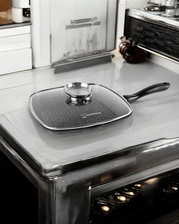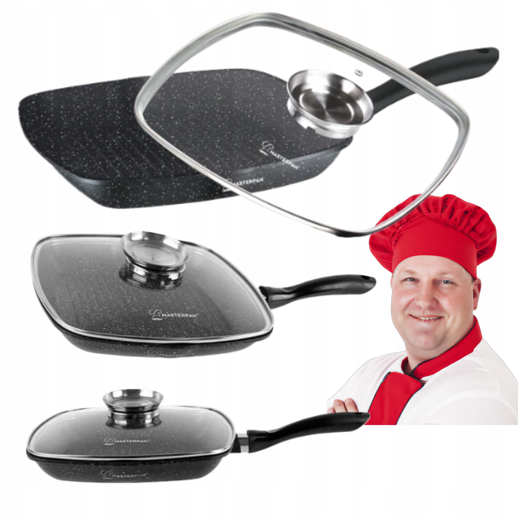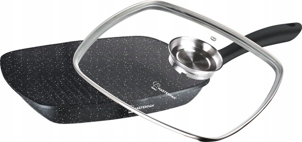 Patelnia Grillowa Aluminiowa z Pokrywką Szklaną Masterpan 28cm Gaz Indukcja