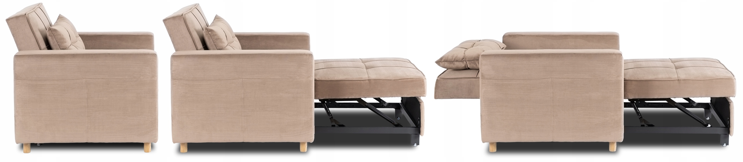 - Mechanizm rozkładania –w kilka sekund zmienia się z wygodnego siedziska w komfortowe miejsce do relaksu lub snu.