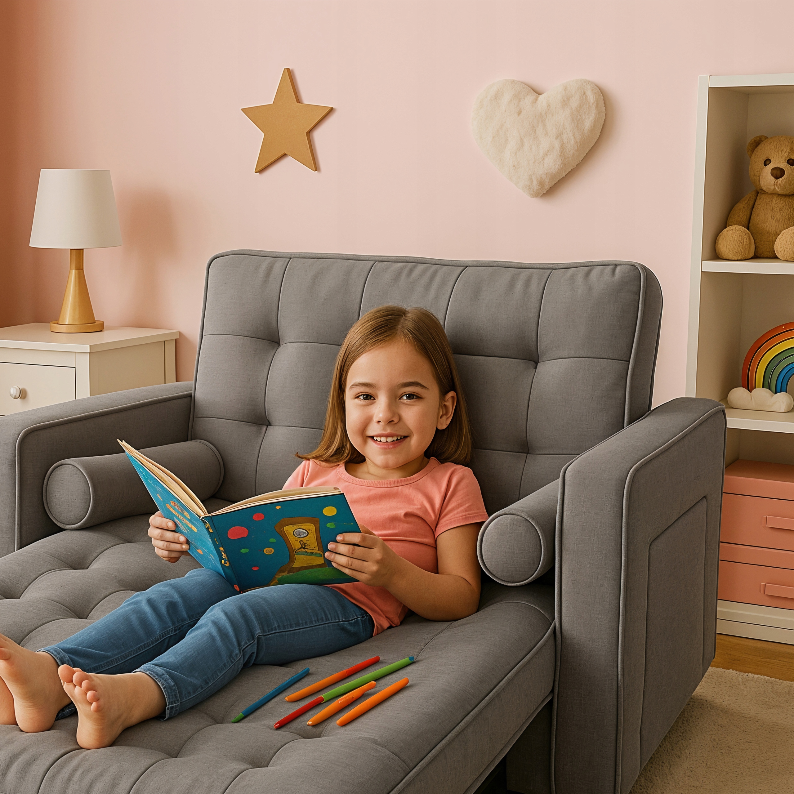- W pokoju dziecięcym – może pełnić rolę wygodnego miejsca do czytania bajek, oglądania ulubionych animacji, gry na tablecie.