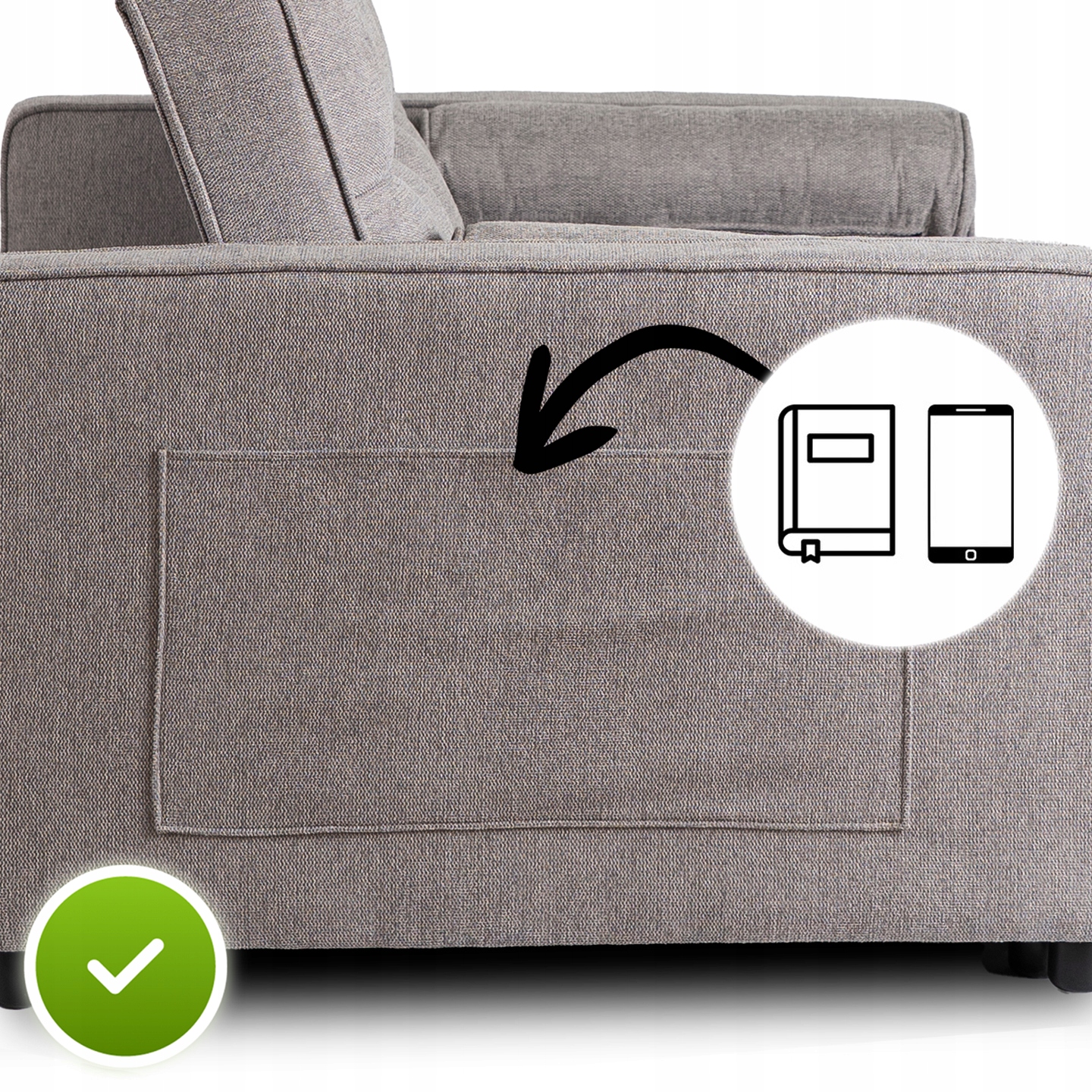 Fotel został zaprojektowany z myślą o codziennym komforcie i wygodzie użytkowania. Duża kieszeń po prawej stronie leżanki to idealny schowek na najpotrzebniejsze drobiazgi – pilot do telewizora, ulubioną książkę, okulary, ładowarkę. Dzięki temu każdy element masz zawsze pod ręką.