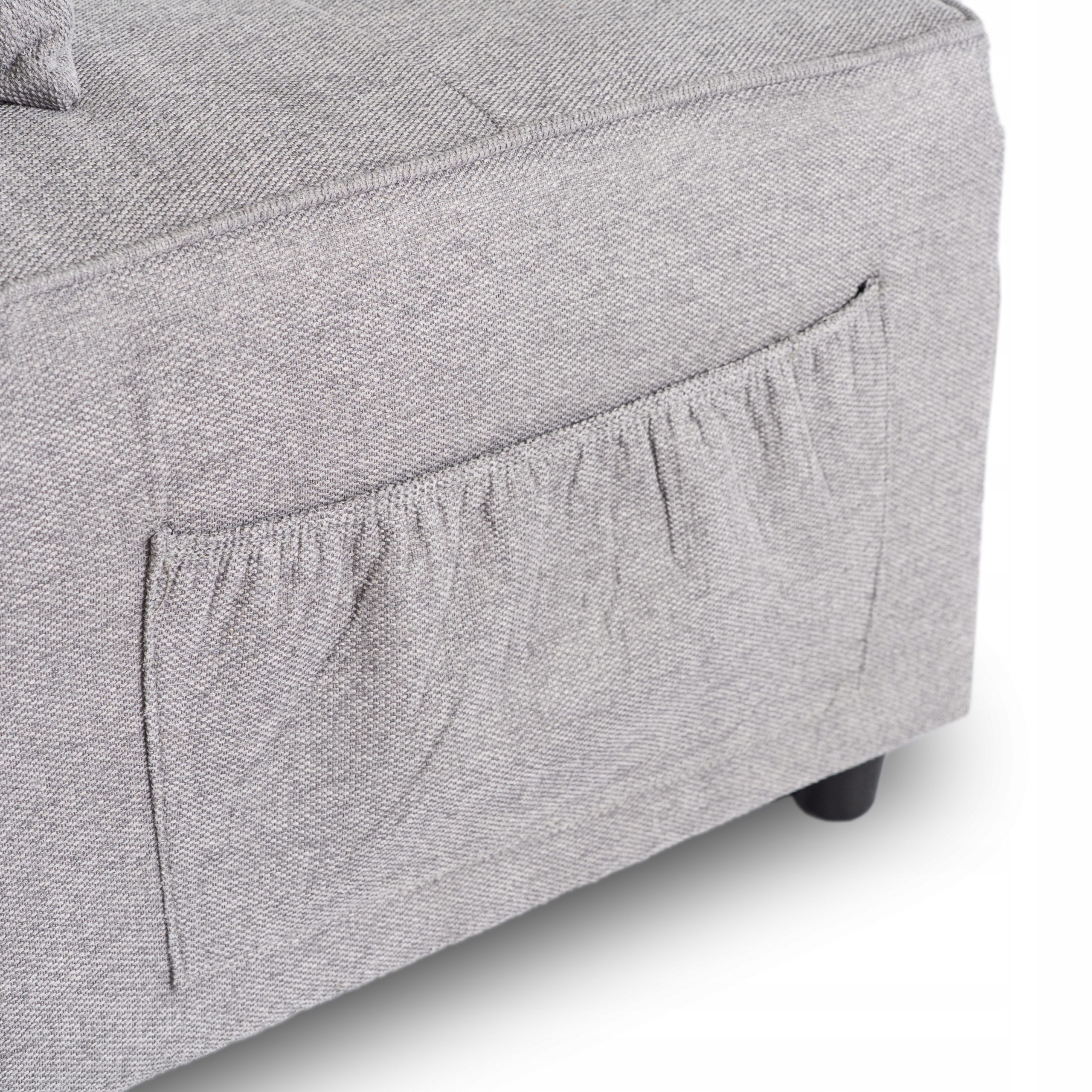 Fotel został zaprojektowany z myślą o codziennym komforcie i wygodzie użytkowania. Duża kieszeń po prawej stronie leżanki to idealny schowek na najpotrzebniejsze drobiazgi – pilot do telewizora, ulubioną książkę, okulary, ładowarkę. Dzięki temu każdy element masz zawsze pod ręką.