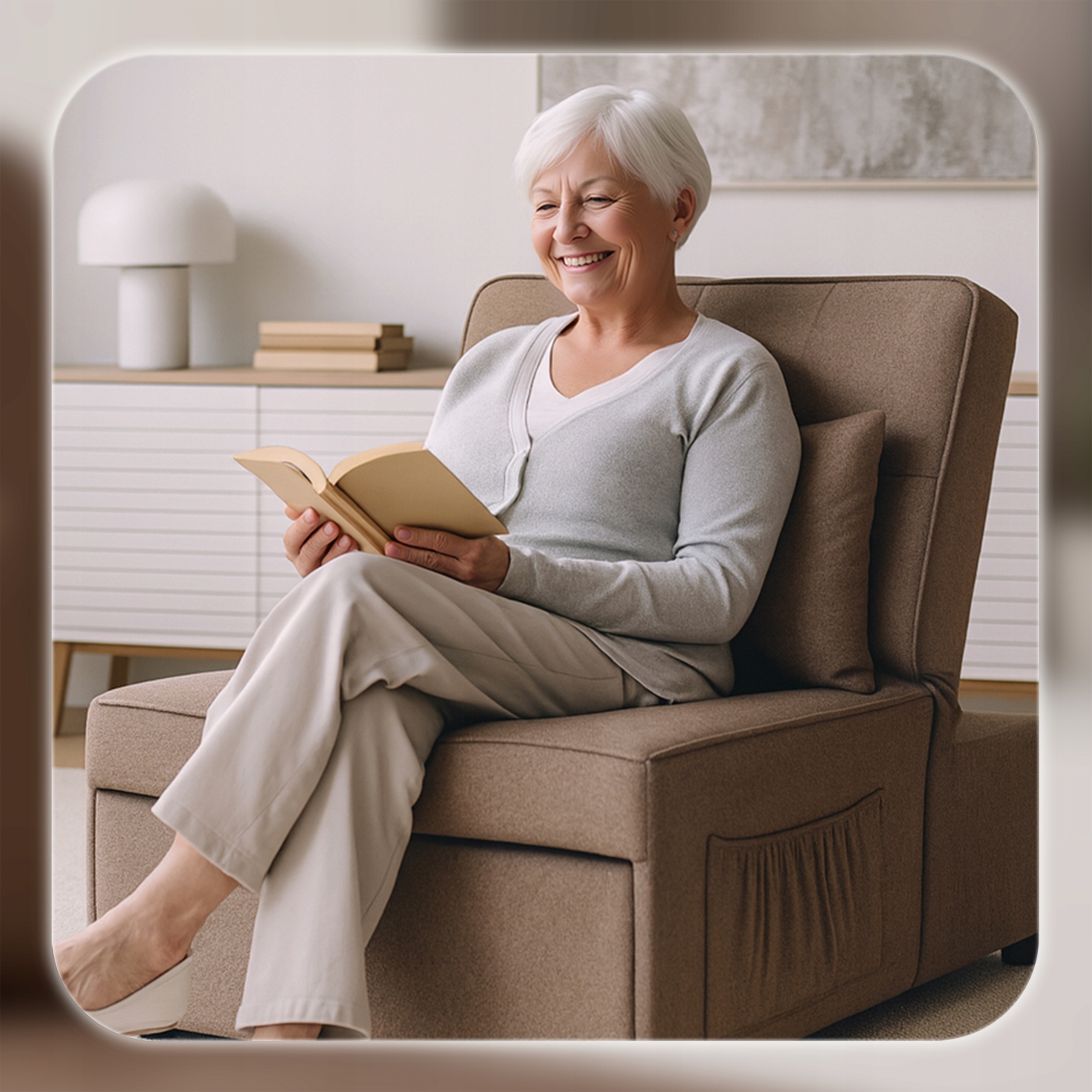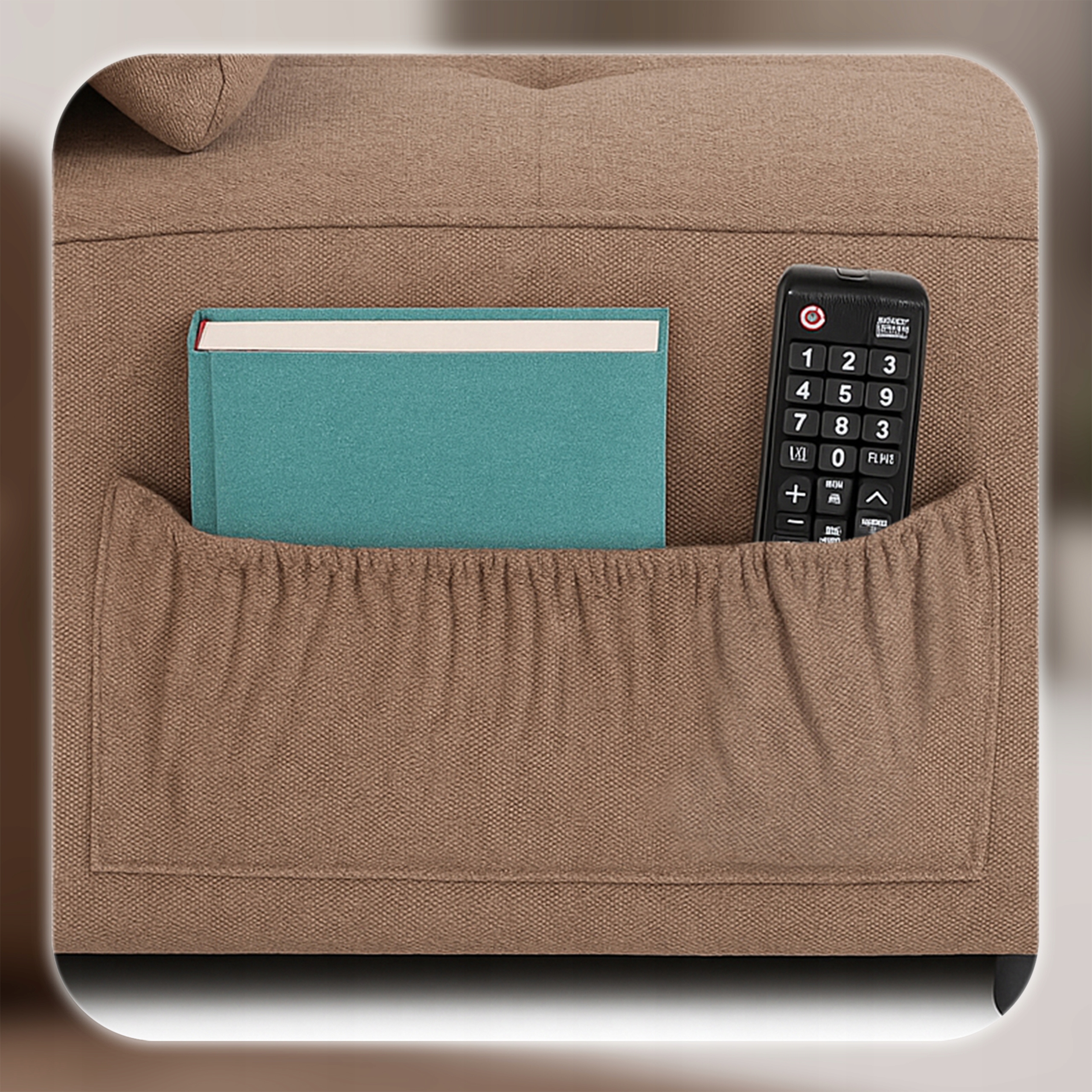 - Praktyczne kieszonki boczne – doskonałe miejsce na książkę, pilota czy telefon, zawsze pod ręką.