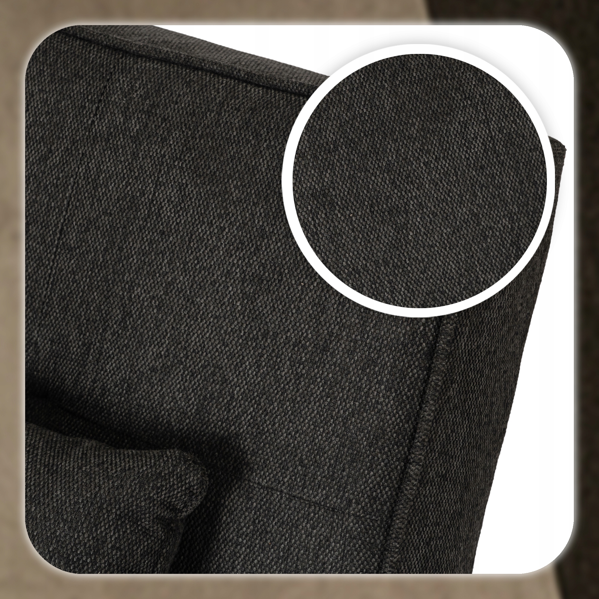 - Wytrzymała tapicerka – tkanina odporna na mechacenie i przetarcia, a jednocześnie miękka i przyjemna w dotyku, co gwarantuje komfort codziennego użytkowania.