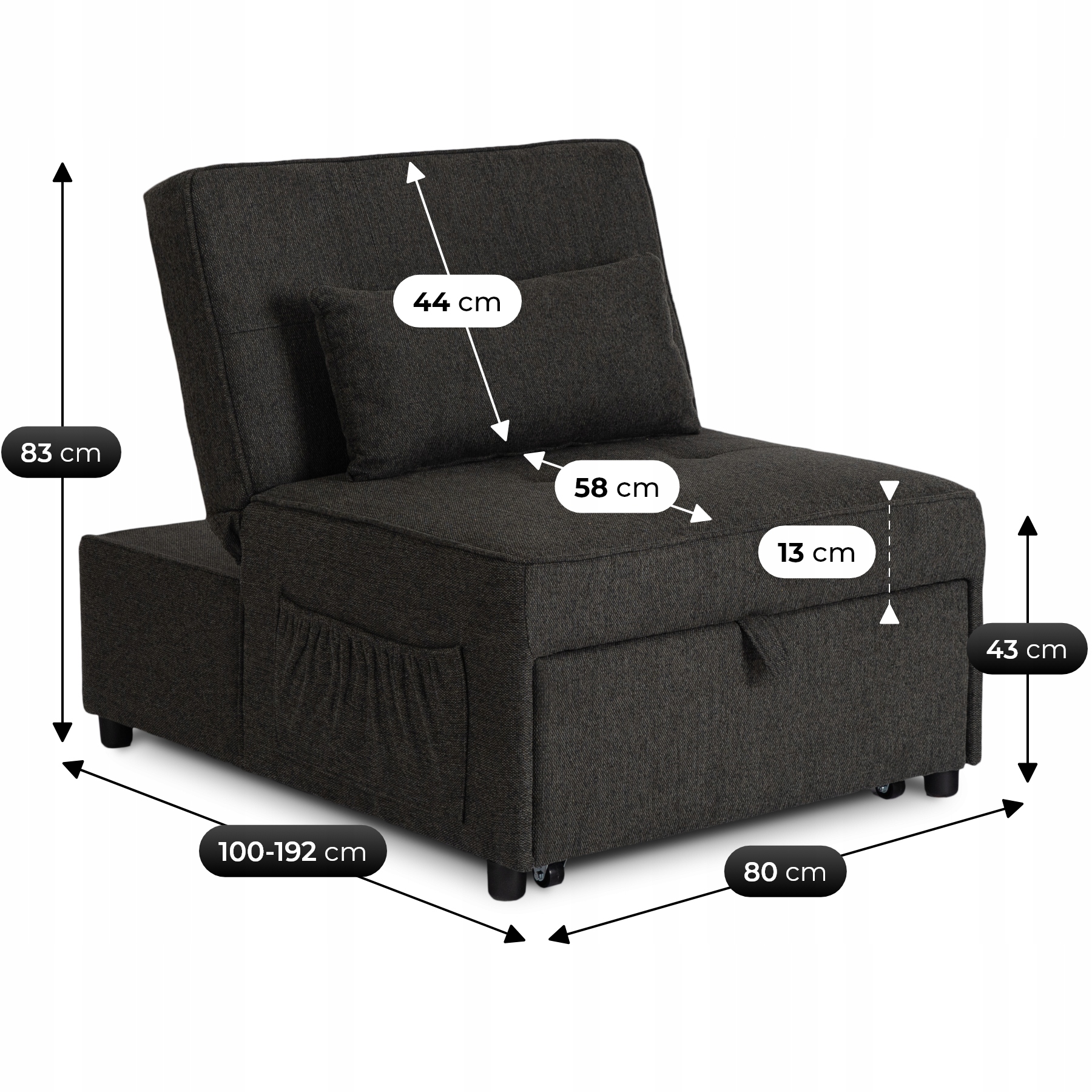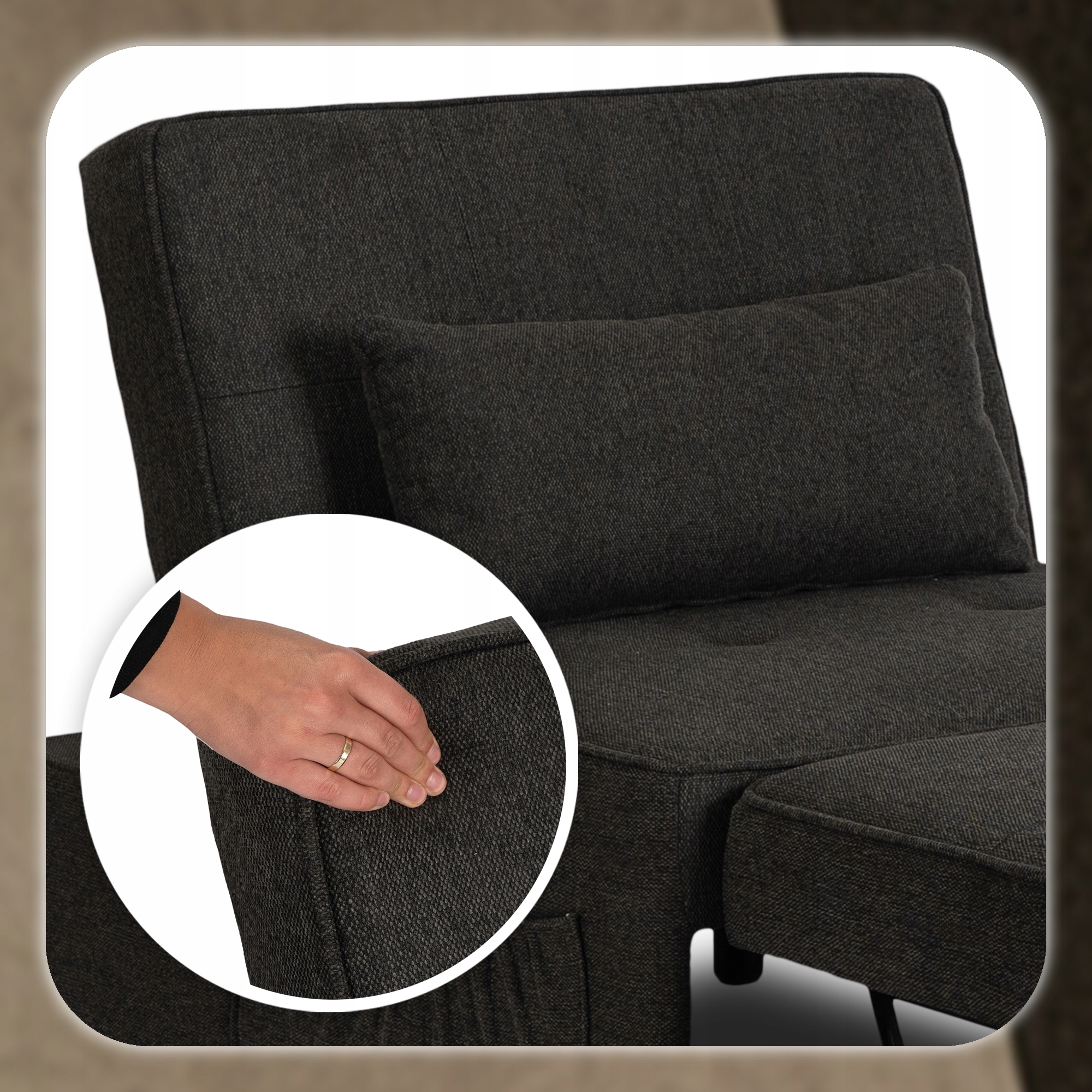 - Mechanizm rozkładania –w kilka sekund zmienia się z wygodnego siedziska w komfortowe miejsce do relaksu lub snu.