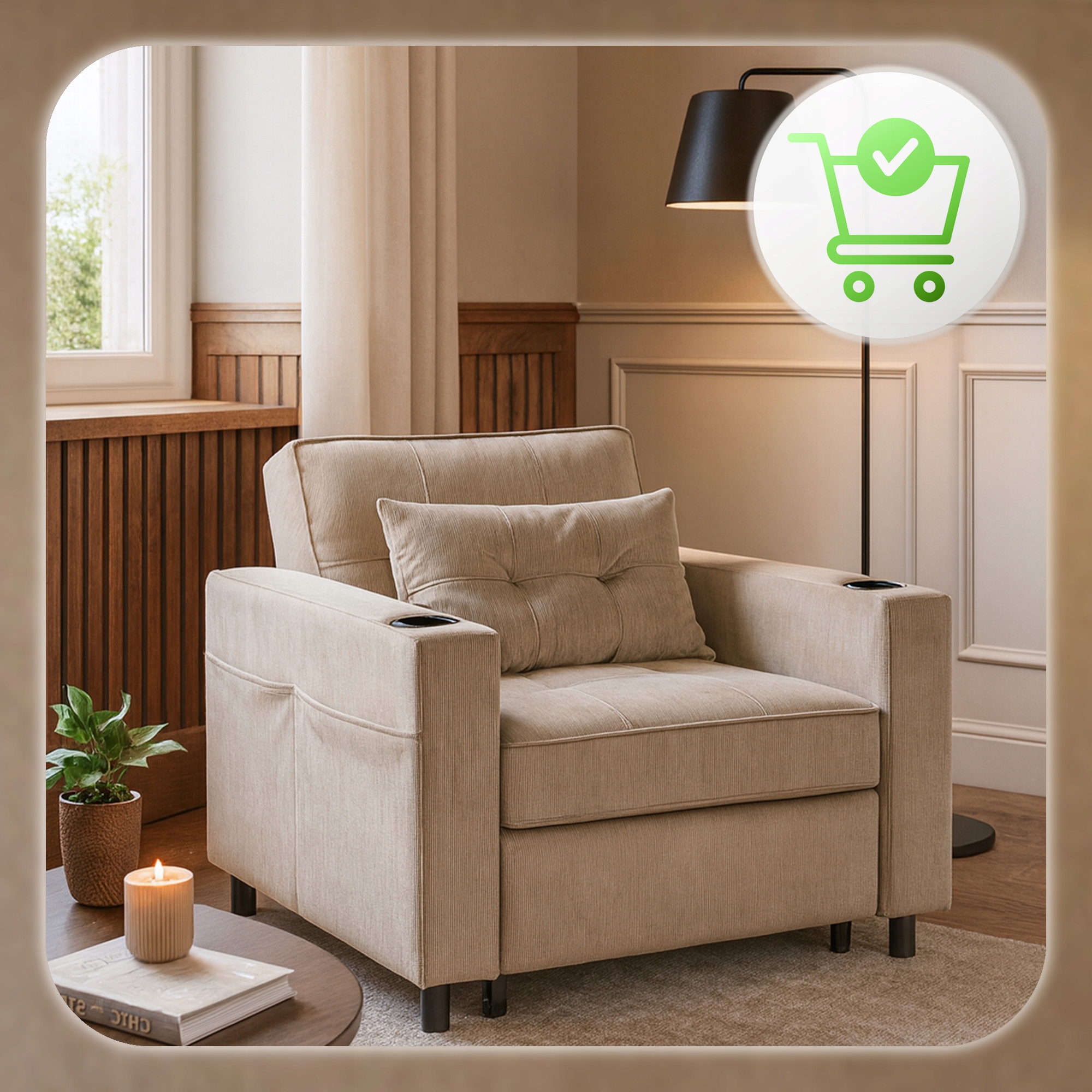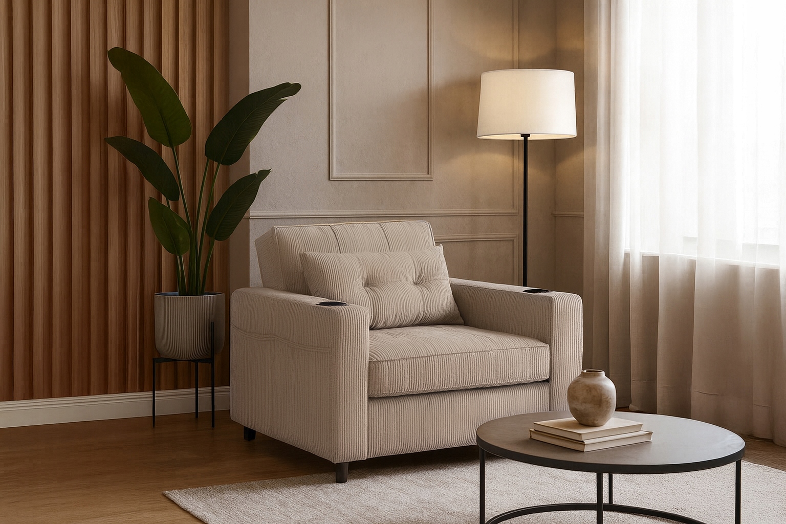 Ten fotel rozkładany łączy elegancję z funkcjonalnością – w kilka chwil zmienia się w wygodne łóżko. Świetnie sprawdzi się w salonie, sypialni, pokoju gościnnym, a także w hotelach.