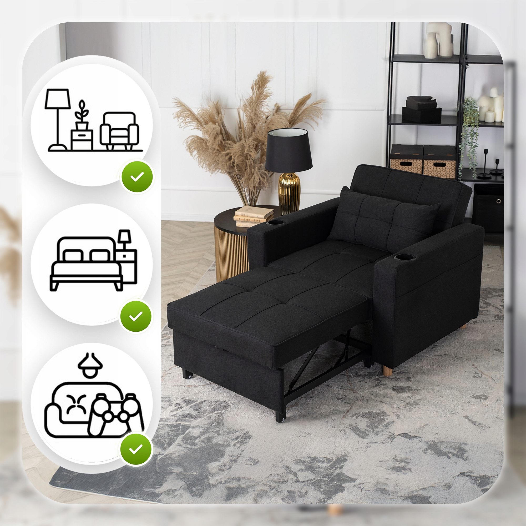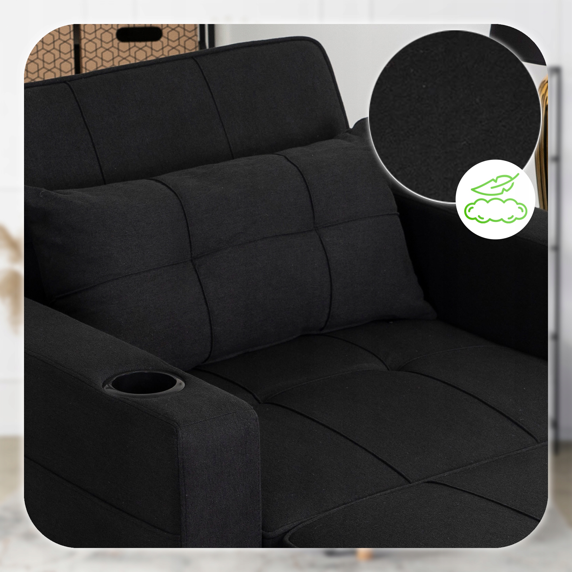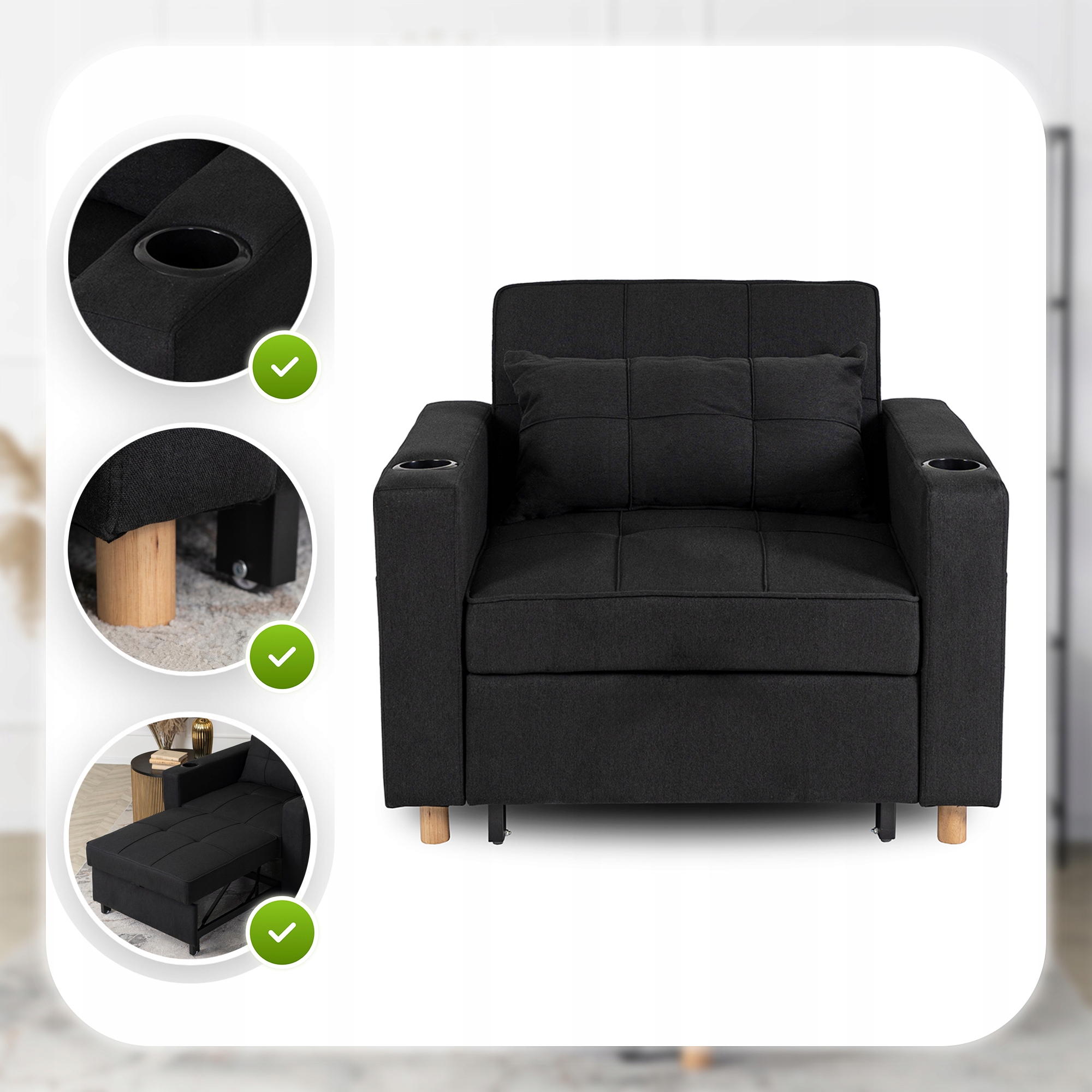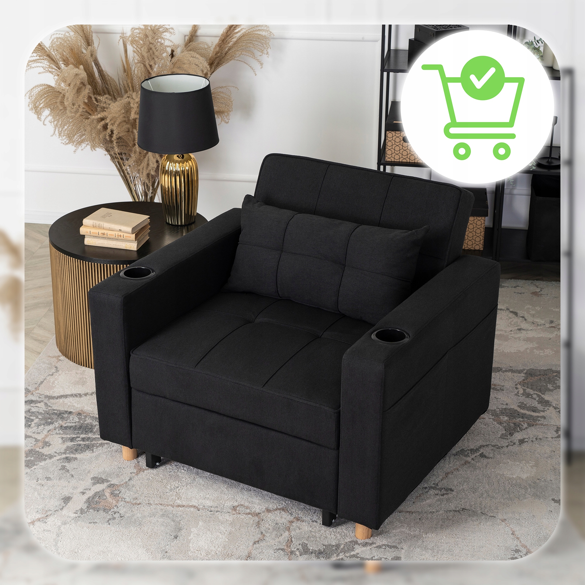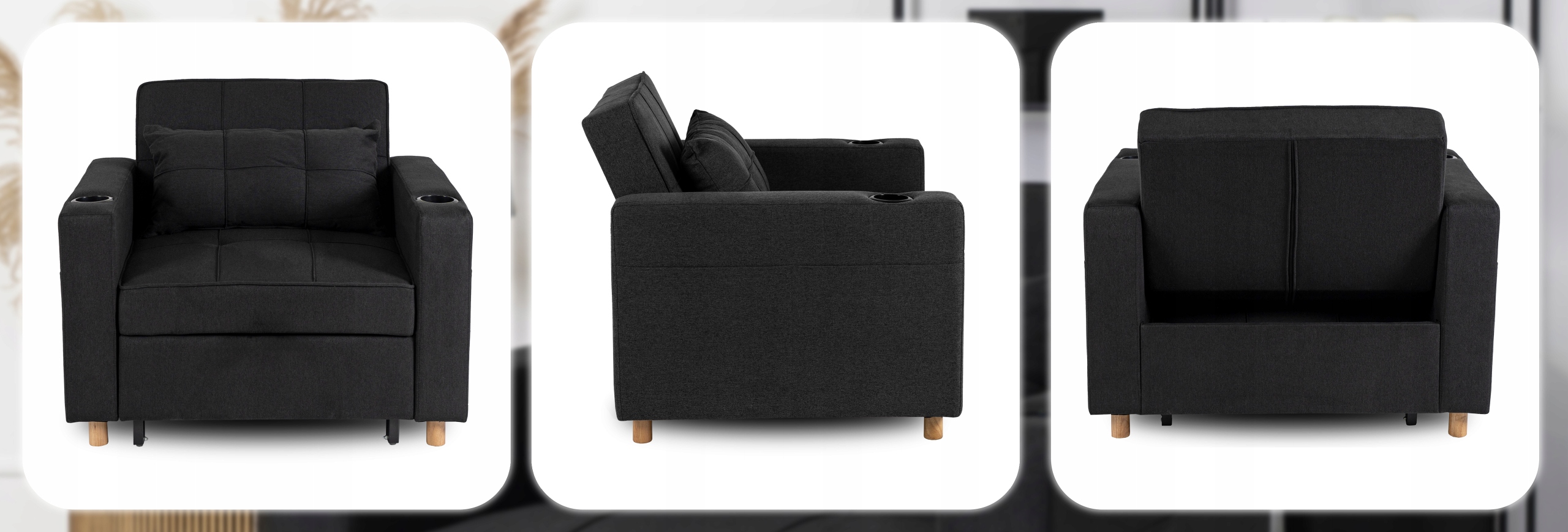 Amerykanka Fotel Rozkładany Sofa Kanapa Do Spania Wypoczynkowy Czarny SOLOR ⭐⭐⭐⭐⭐