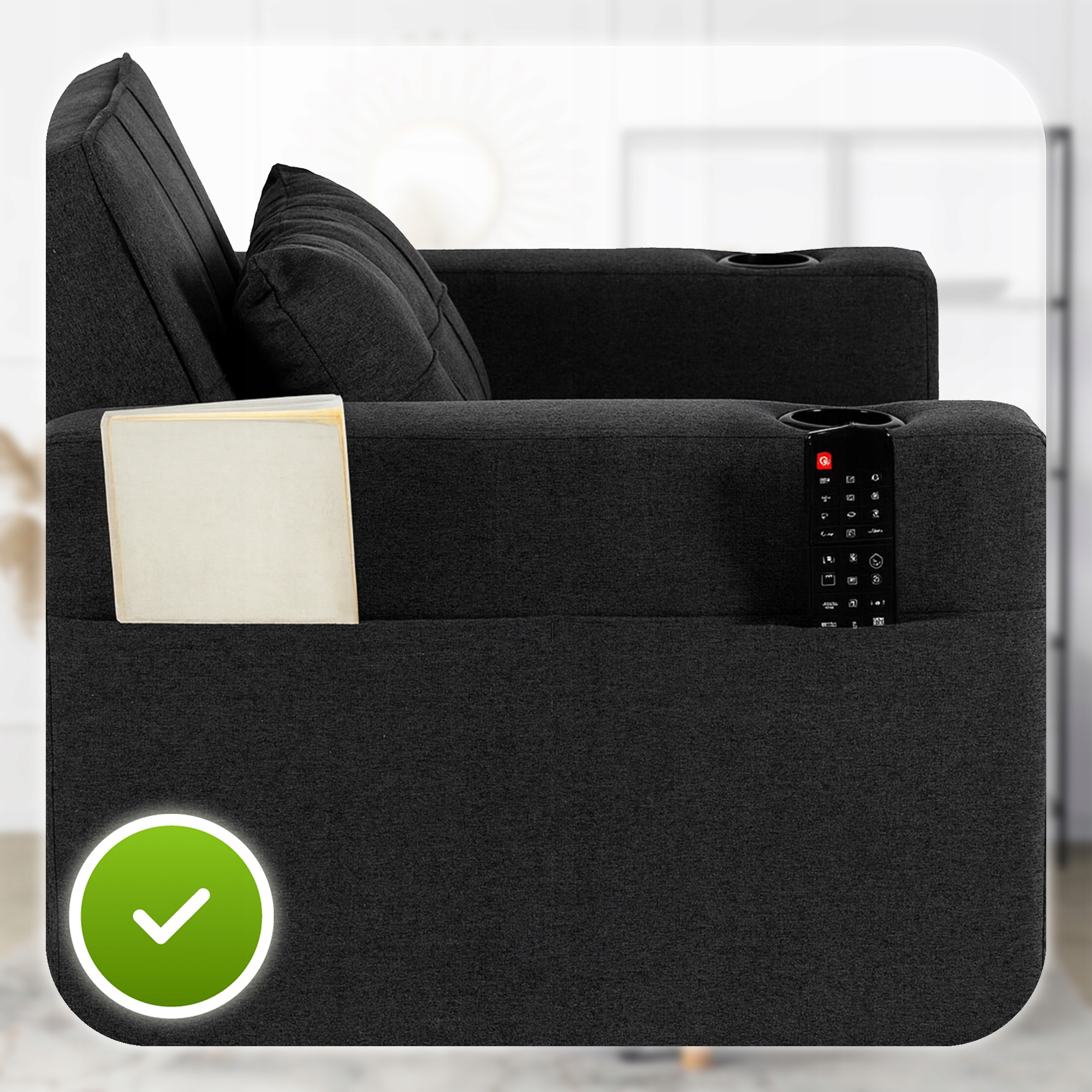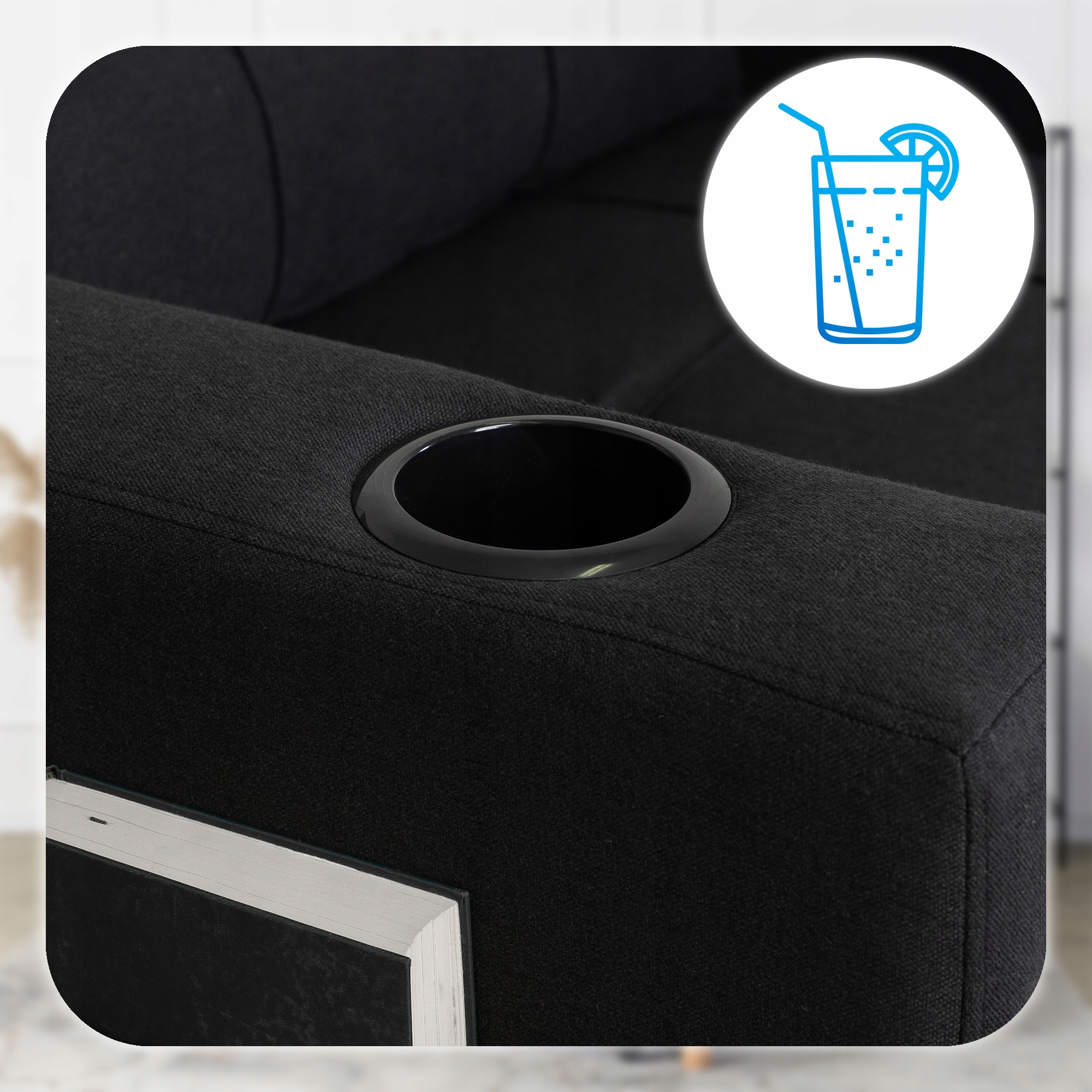 - Miejsca na napój – praktyczne uchwyty w podłokietnikach mieszczą butelkę, szklankę czy puszkę, zapewniając wygodę podczas odpoczynku.