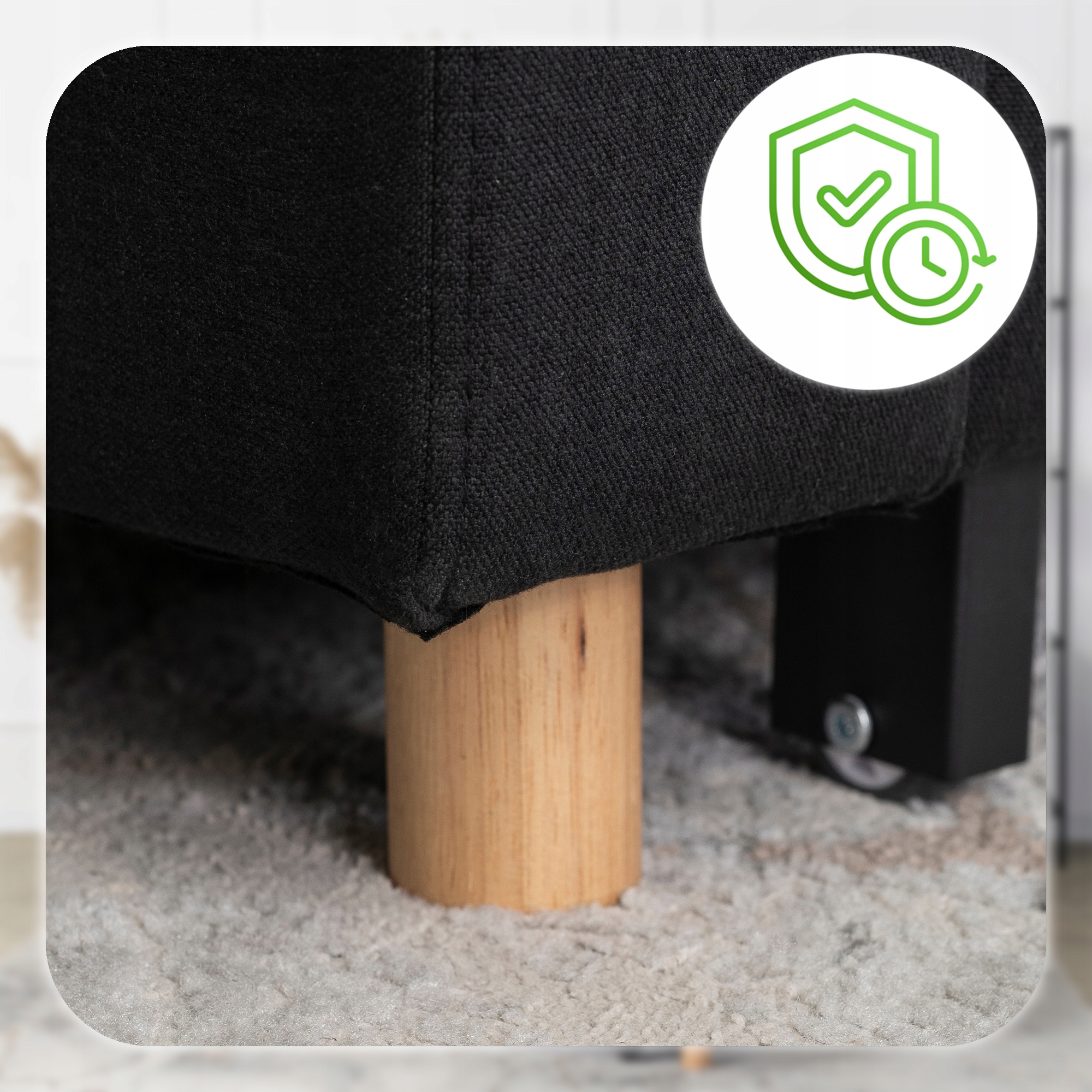 - Wytrzymała tapicerka – tkanina odporna na mechacenie i przetarcia, a jednocześnie miękka i przyjemna w dotyku, co gwarantuje komfort codziennego użytkowania.