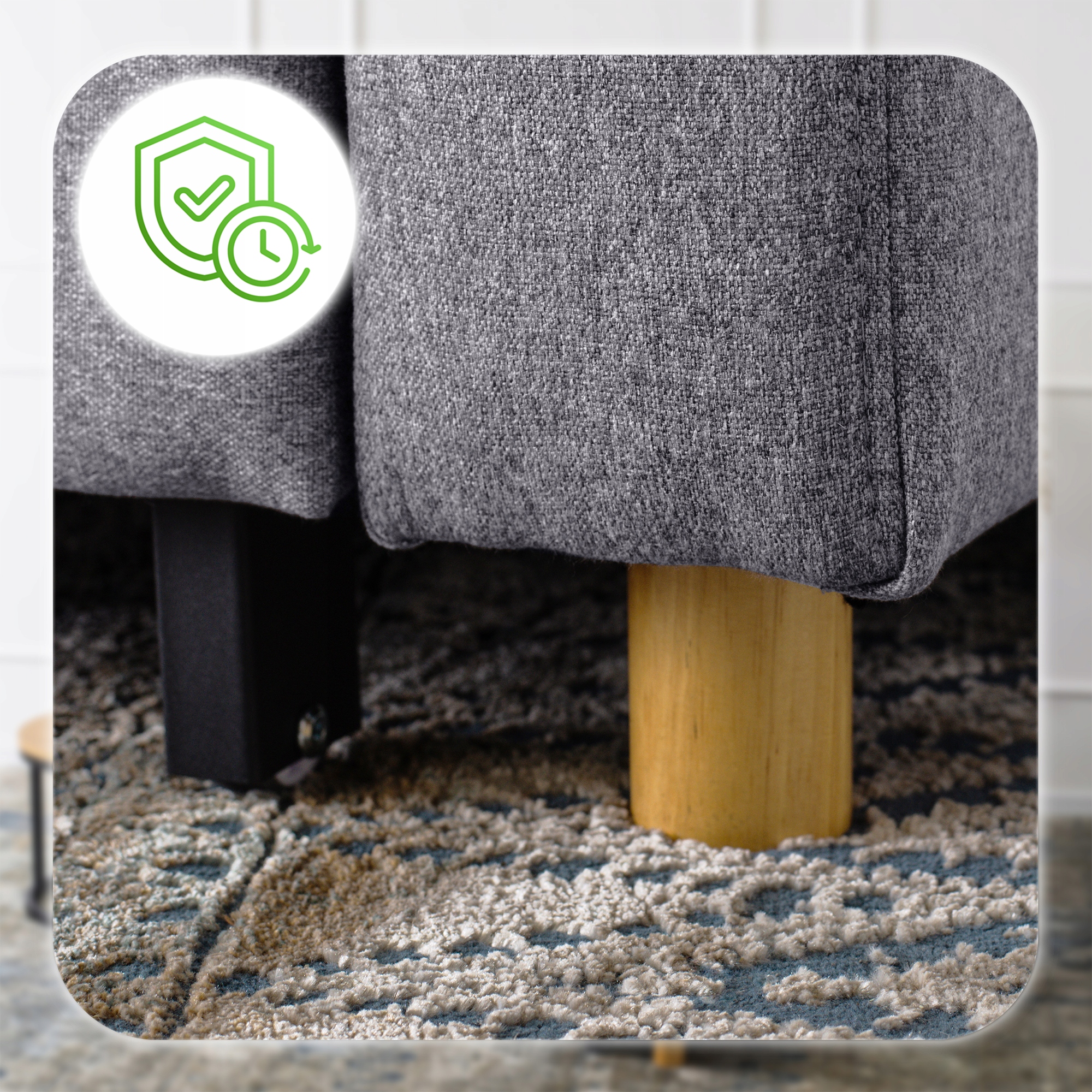 Fotel SOLOR opiera się na solidnych, drewnianych nóżkach, które gwarantują stabilność i bezpieczeństwo podczas użytkowania. Dzięki nim mebel stoi pewnie na każdej powierzchni – od paneli, przez płytki, aż po dywan. Nóżki nie tylko wzmacniają konstrukcję, ale też dodają fotelowi lekkości i elegancji, sprawiając, że świetnie wpisuje się w nowoczesne wnętrza.