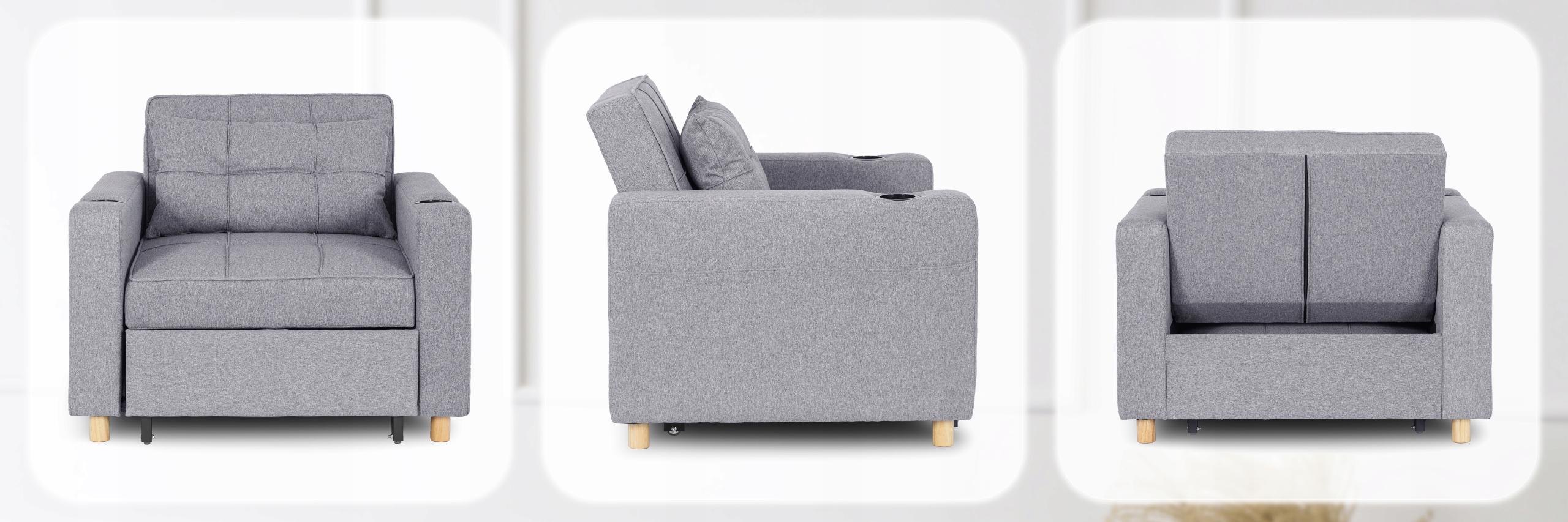 Fotel SOLOR w kolorze szarym to doskonałe połączenie komfortu i praktyczności. W kilka chwil zmienia się z klasycznego fotela w leżankę lub wygodne łóżko, oferując trzy poziomy rozłożenia, które idealnie dopasujesz do swoich potrzeb – od popołudniowego relaksu, przez seans filmowy, aż po nocny odpoczynek.