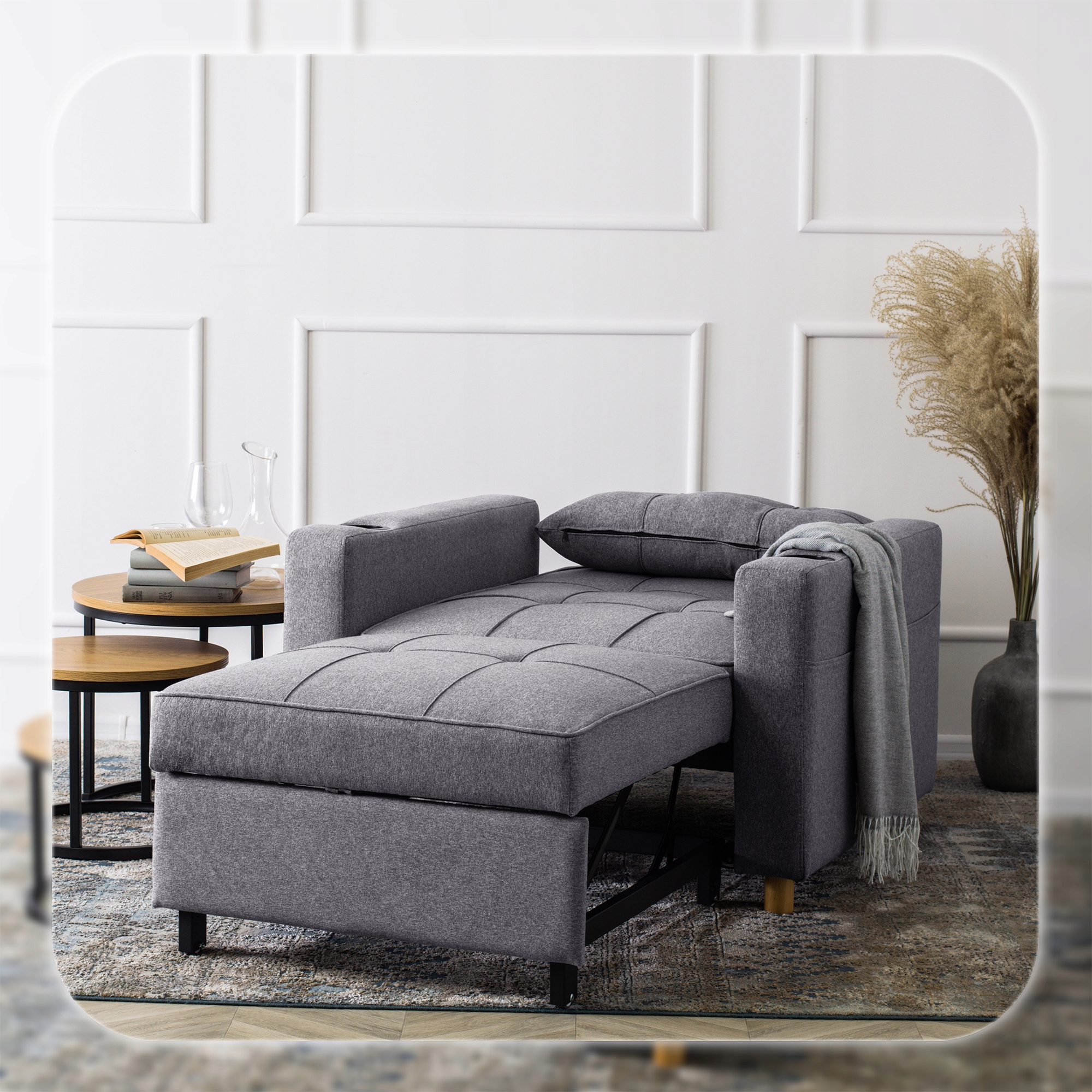 - Popołudniową drzemkę – szybka zmiana w praktyczne łóżko daje Ci miejsce na regenerację bez potrzeby rozkładania dodatkowego mebla.