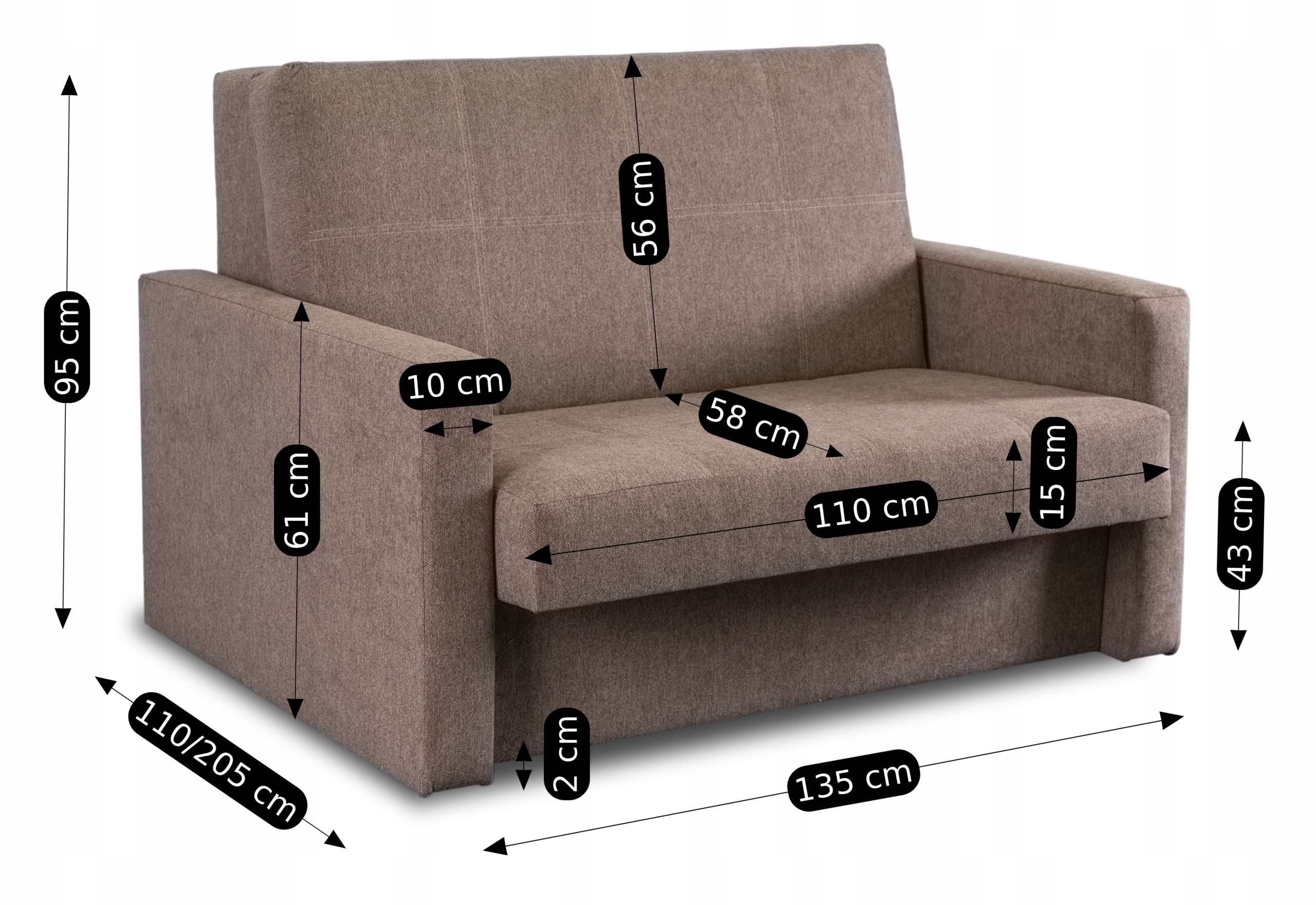 Amerykanka Fotel Rozkładany Wypoczynkowy Dwuosobowy Do Spania Beżowa MILAN ⭐⭐⭐⭐⭐