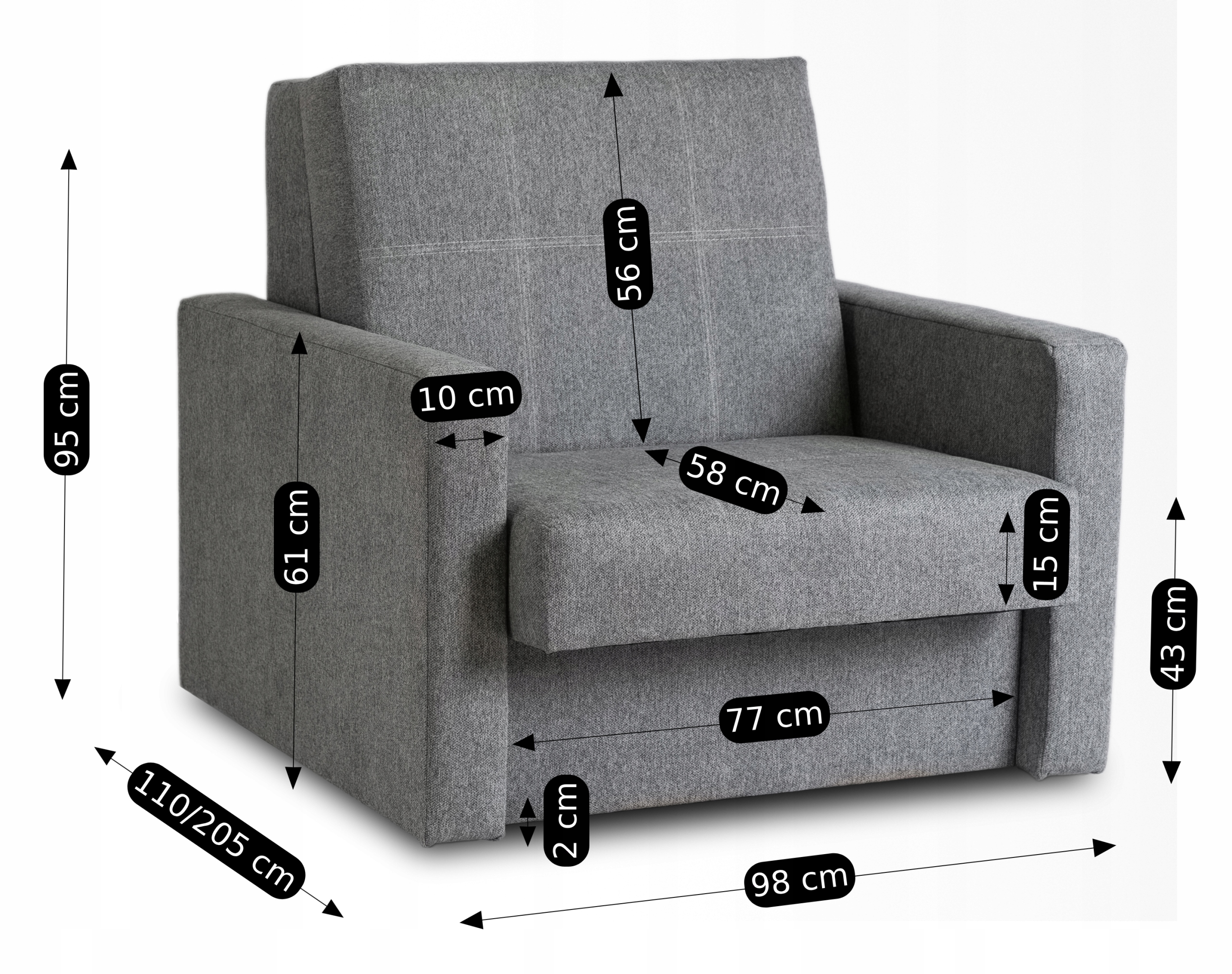 - Fotel rozkładany MAJA 1 w kolorze popielatym