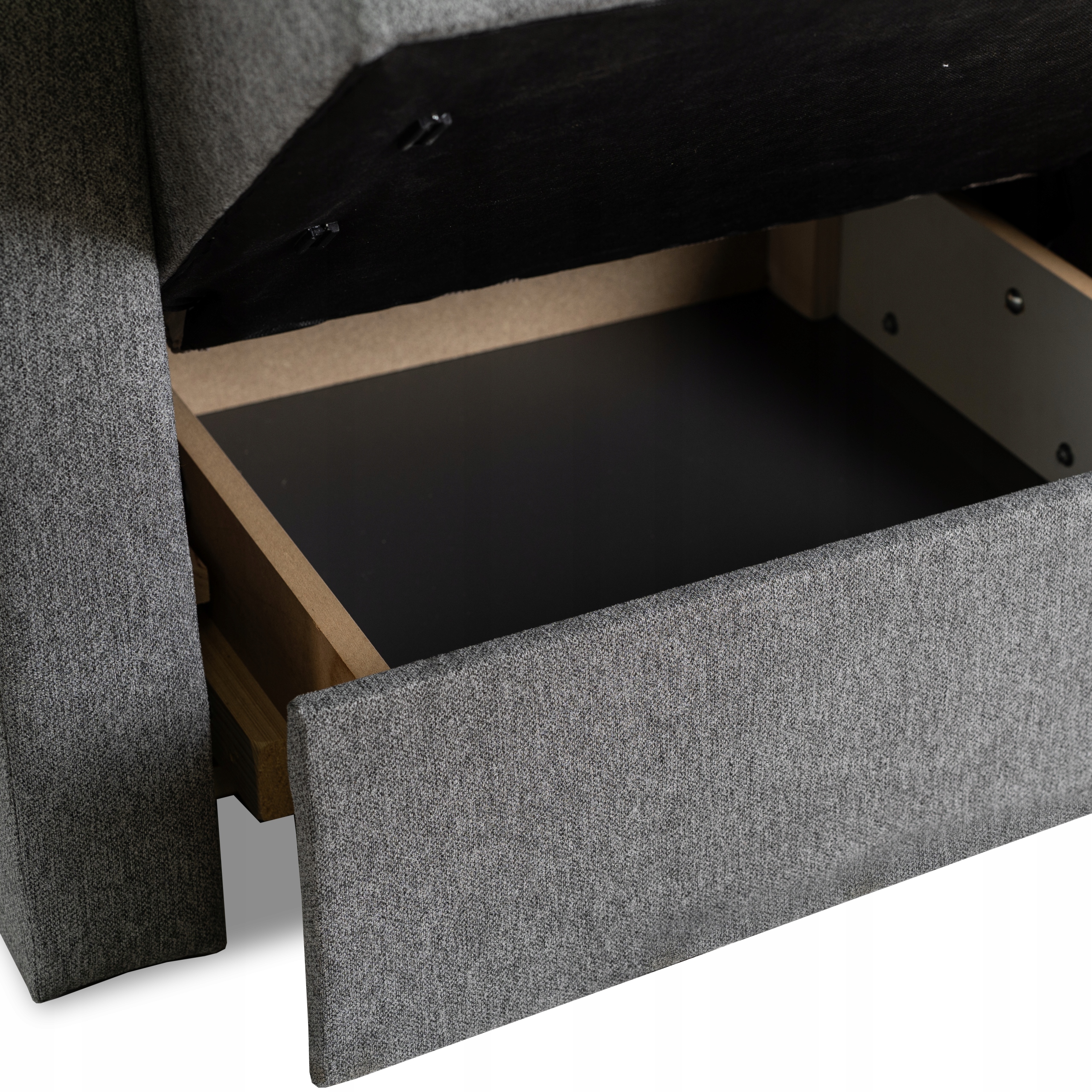 ✅ Mebel posiada też praktyczny pojemnik, który sprawdzi się jako dodatkowe miejsce do przechowywania. Idealnie pomieści pościel, koce czy poduszki.