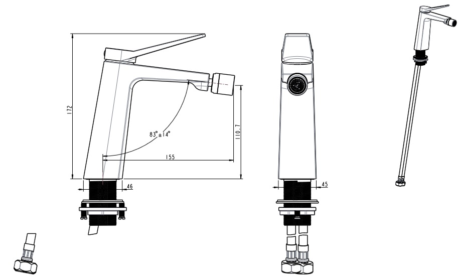 BATERIA BIDETOWA CZARNA ŁAZIENKOWA MOSIĘŻNA STOJĄCA NOWOCZESNY KRAN SELVA