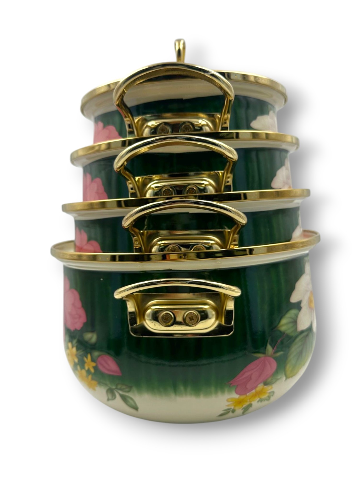 • Każdy garnek posiada mocne, metalowe uchwyty oraz szklane pokrywki z nienagrzewającymi się plastikowymi uchwytami, co zapewnia komfort i bezpieczeństwo użytkowania.