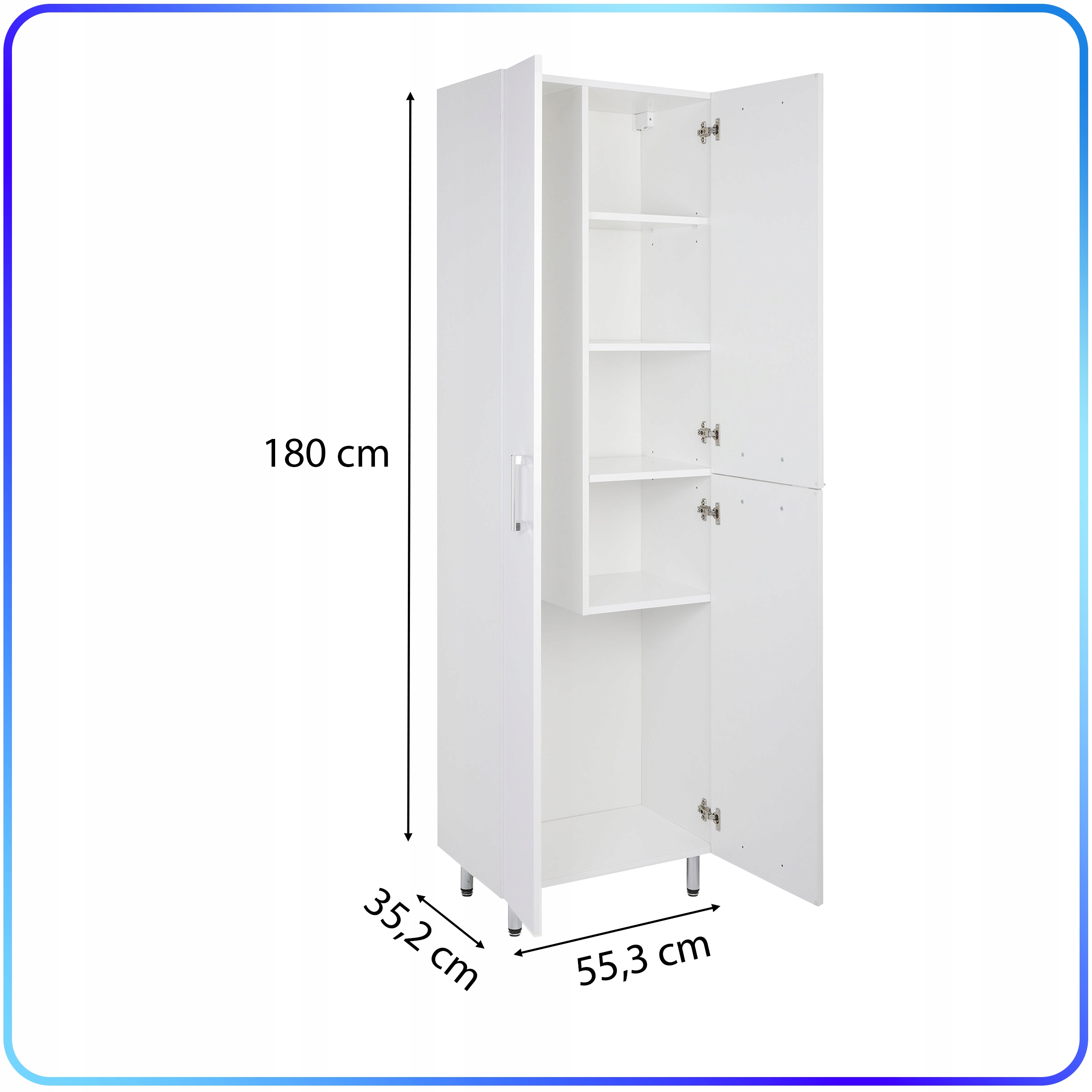 Biały Słupek łazienkowy na mop 55 x 35 x 180 Regulowane nogi Front Połysk