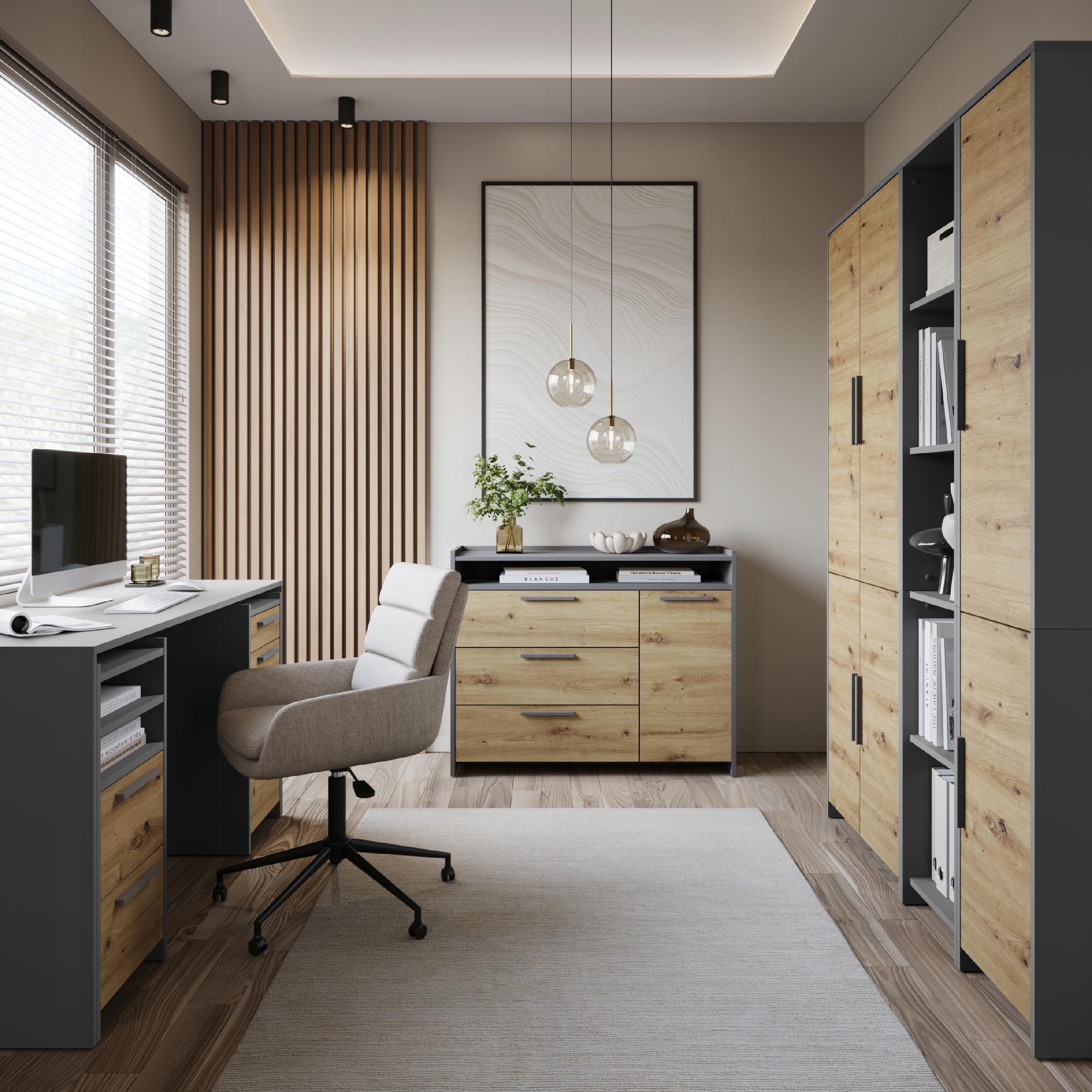Biurko posiada możliwość wielu konfiguracji, wystarczy dokupić do niego jedną z komód z kolekcji ALTIVO i skonfigurować je według własnych potrzeb.