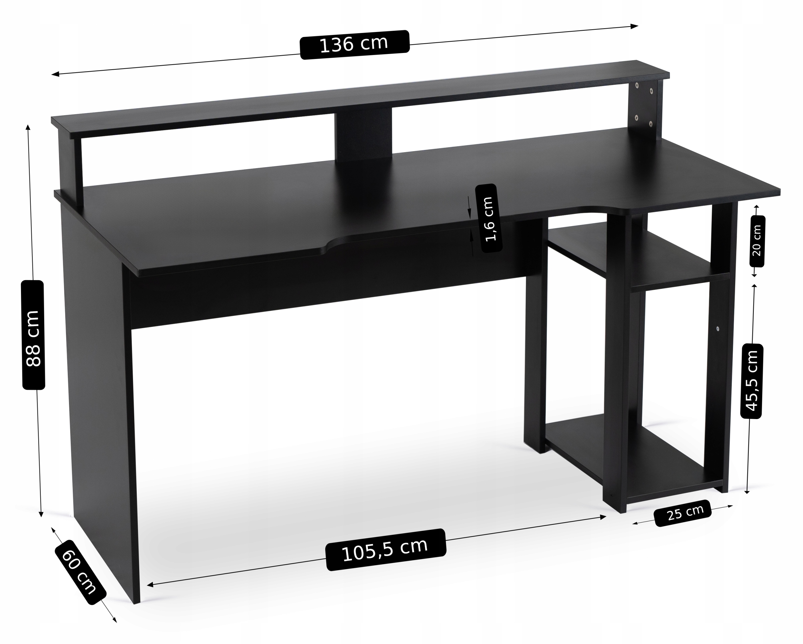 ✅ Czarny kolor biurka świetnie uzupełni pokój gracza.