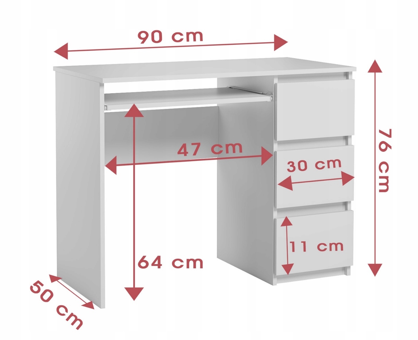 Biurko Komputerowe Białe Heini Biały Mat 3 Szuflady 90 CM